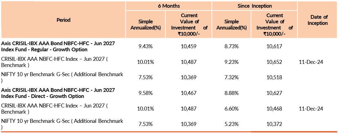 | AXIS CRISIL-IBX AAA Bond NBFC-HFC - Jun 2027 Index Fund | 29-Aug-2025 | - | - | - | - | -0.51 |