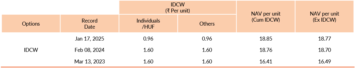 Face value of units is ₹ 10. IDCW means Income Distribution cum Capital Withdrawal.