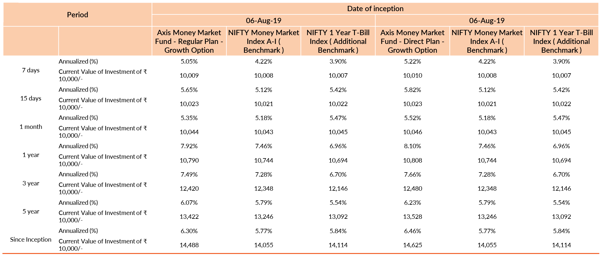 Past performance may or may not be sustained in future. Different plans have different expense structure. Devang Shah is man aging the scheme since 6th August 2019 and he manages 21 schemes of Axis Mutual Fund & Aditya Pagaria is managing the scheme since 6th August 2019 and he manages 21 schemes of Axis Mutual Fund & Sachin Jain is managing the scheme since 9th November 2021 and he manages 13 schemes of Axis Mutual Fund . Please refer to annexure for performance of schemes managed by the fund managers. Returns greater than 1 year eriod are compounded annualised (CAGR). Face Value per unit : ₹ 1,000.