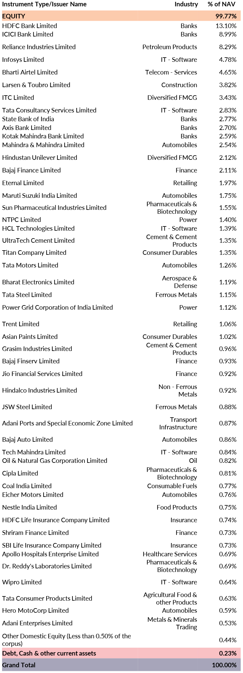(An open ended scheme replicating / tracking Nifty 50 TRI)