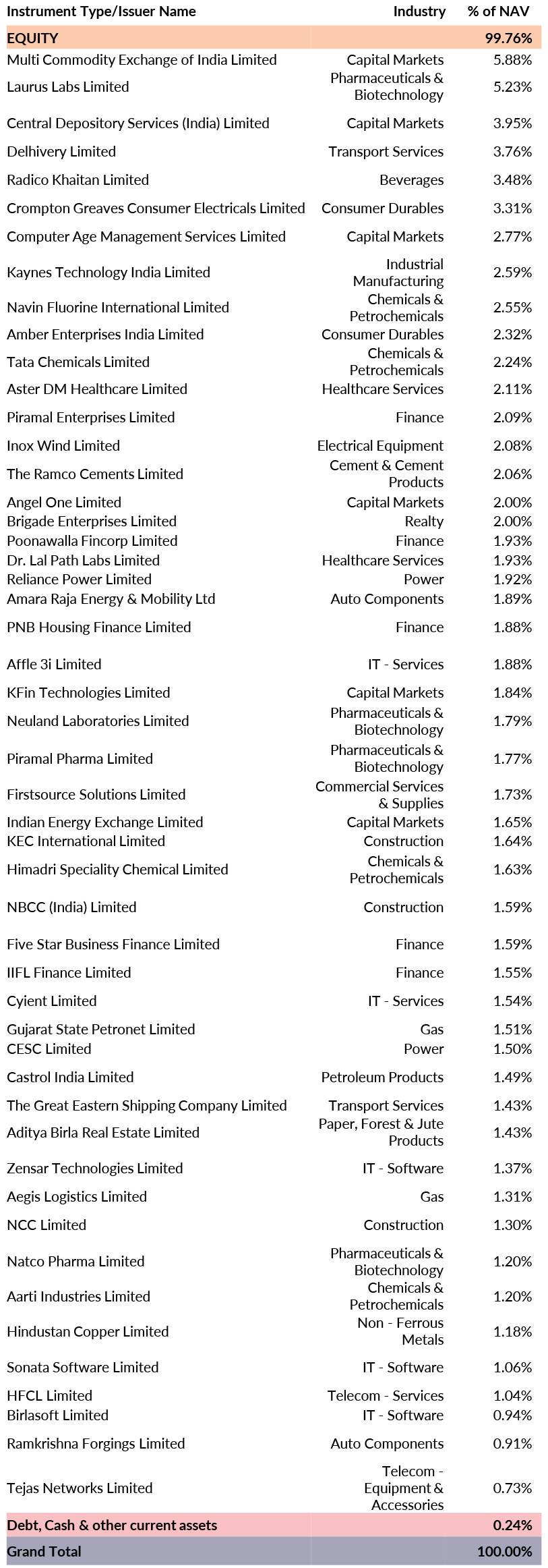 Cash & Others:0.23%