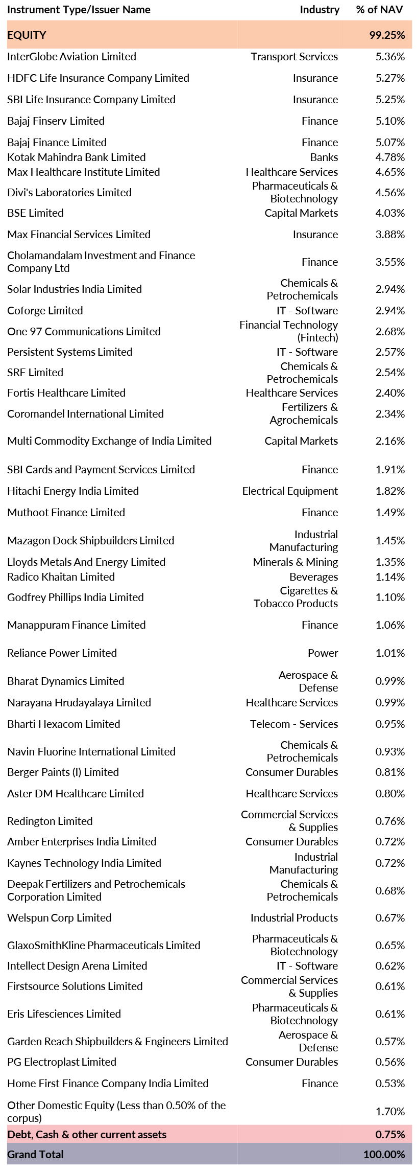 ^^Market caps are defined as per SEBI regulations as below: a. Large Cap: 1st -100th company in terms of full market capitalization. b. Mid Cap: 101st -250th company in terms of full market capitalization. c. Small Cap: 251st company onwards in terms of full market capitalization.