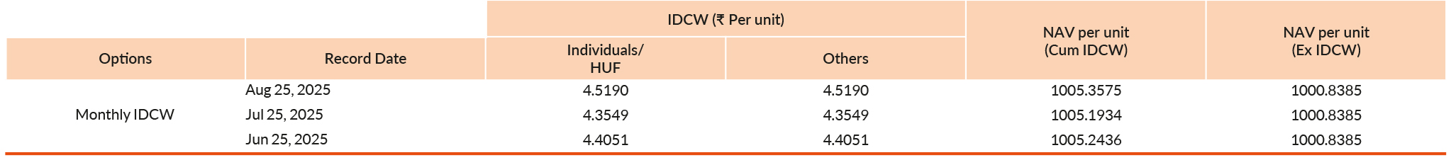 may not be sustained in future. Face value of units is ₹ 1000.IDCW means Income Distribution cum Capital Withdrawal.