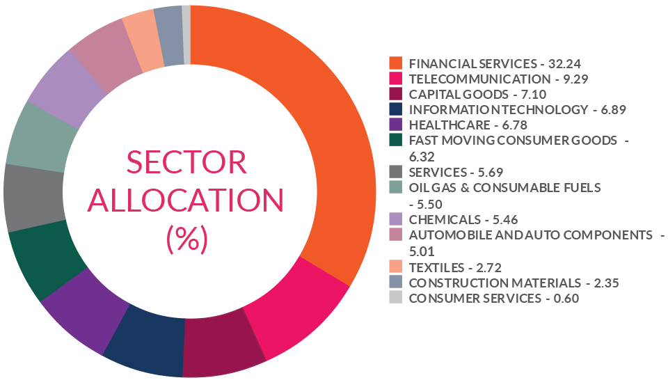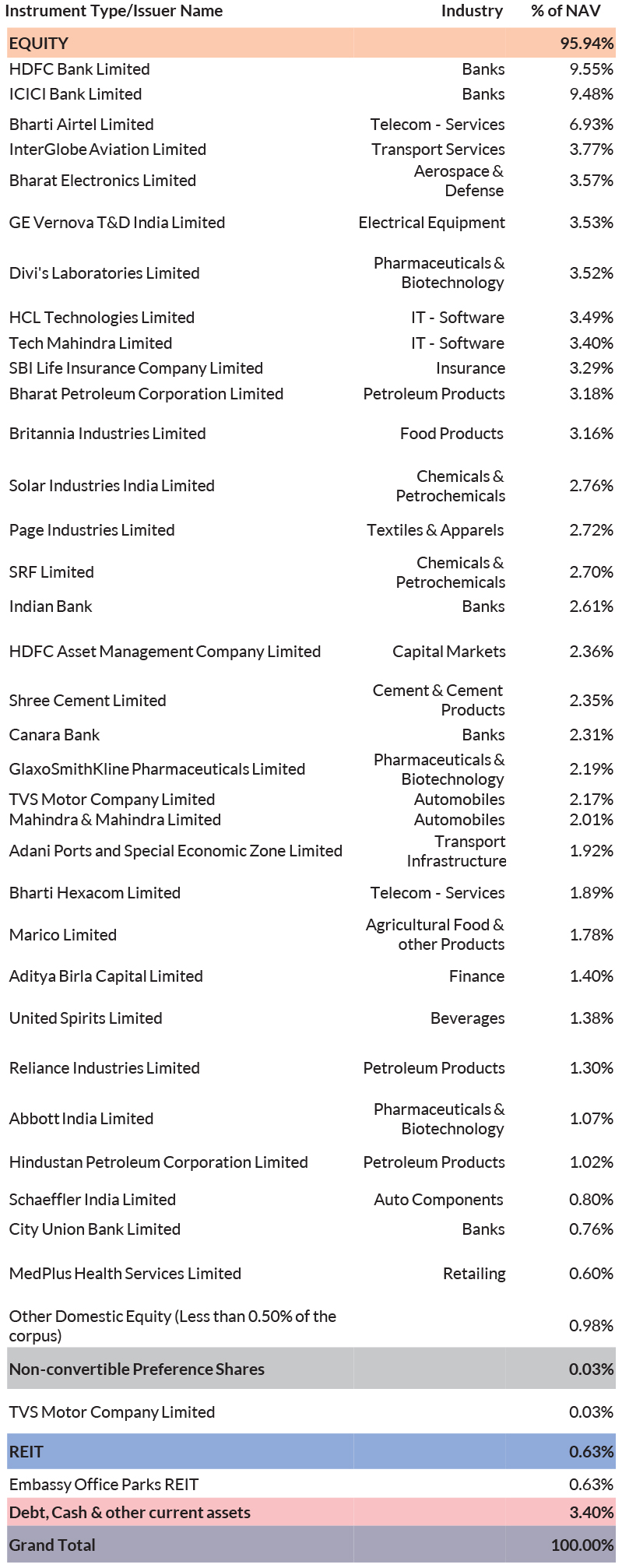 ^^Market caps are defined as per SEBI regulations as below: a. Large Cap: 1st -100th company in terms of full market capitalization. b. Mid Cap: 101st -250th company in terms of full market capitalization. c. Small Cap: 251st company onwards in terms of full market capitalization.