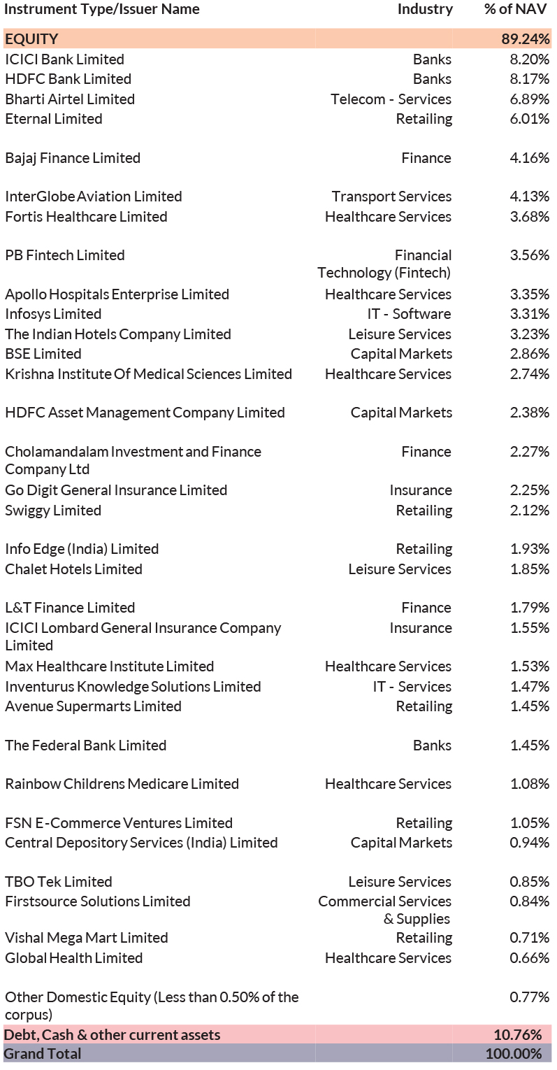 ^^Market caps are defined as per SEBI regulations as below: a. Large Cap: 1st -100th company in terms of full market capitalization. b. Mid Cap: 101st -250th company in terms of full market capitalization. c. Small Cap: 251st company onwards in terms of full market capitalization.