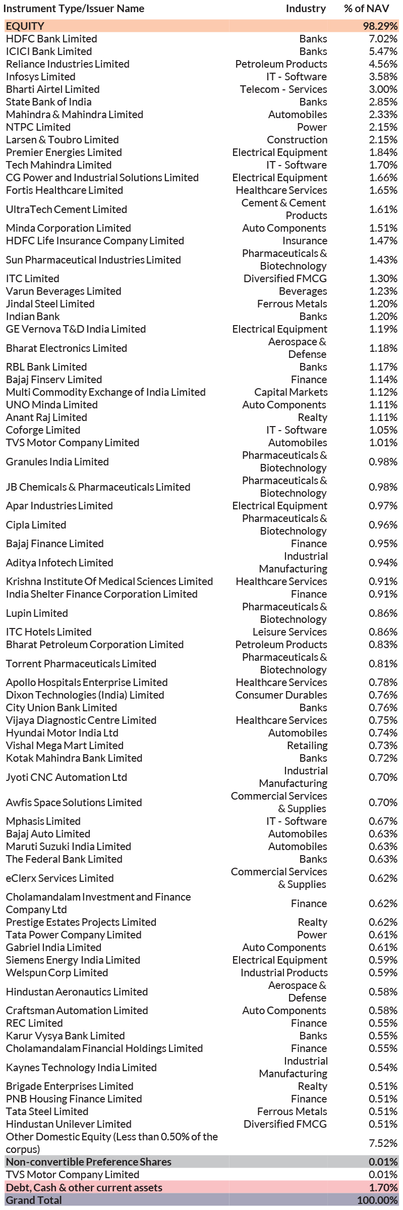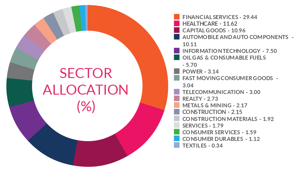 ^^Market caps are defined as per SEBI regulations as below: a. Large Cap: 1st -100th company in terms of full market capitalization. b. Mid Cap: 101st -250th company in terms of full market capitalization. c. Small Cap: 251st company onwards in terms of full market capitalization.