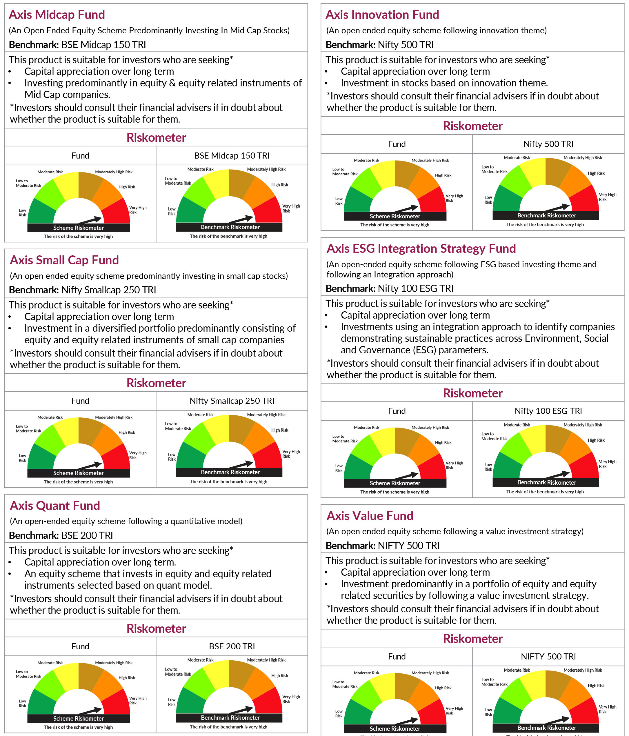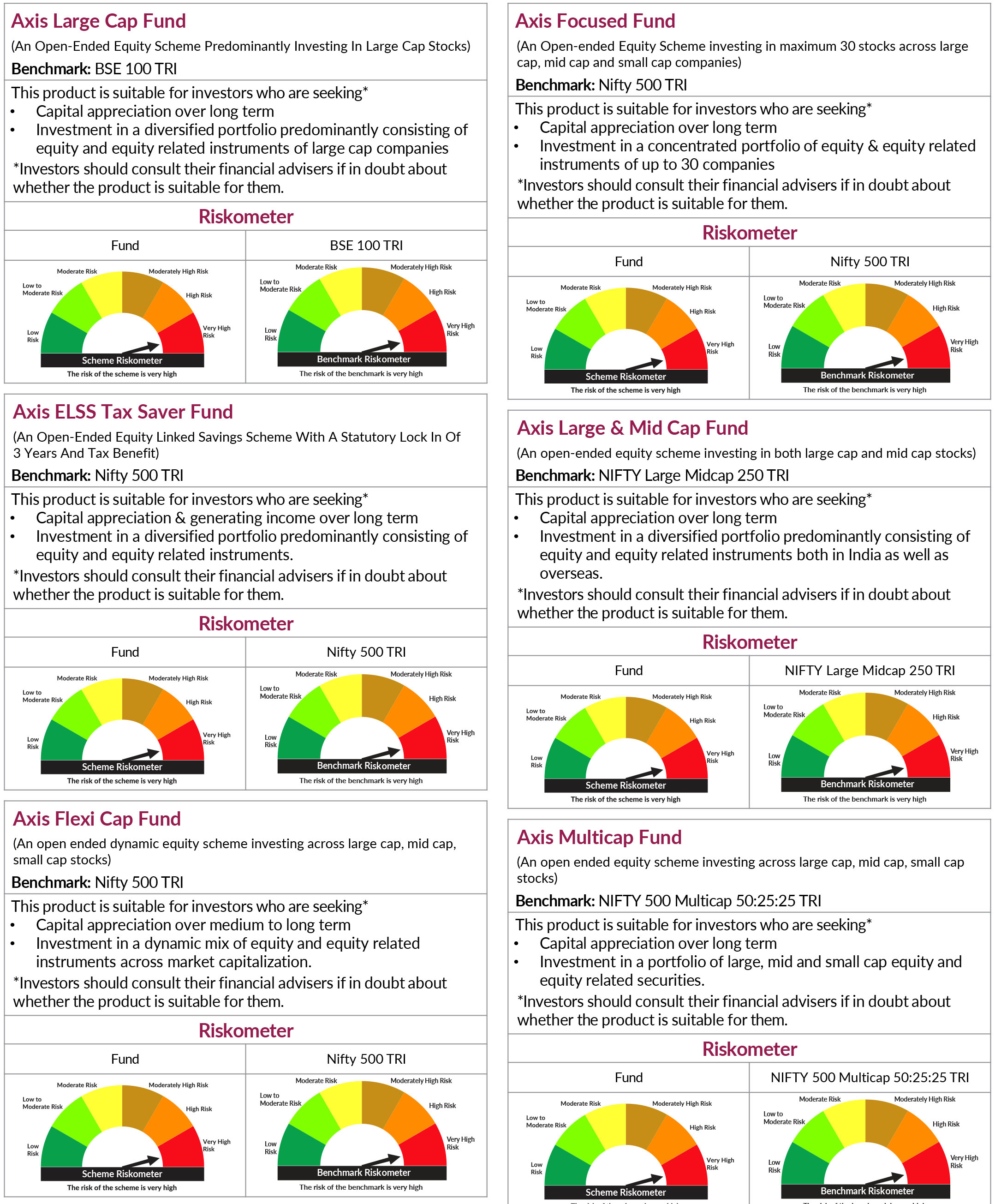 | AXIS CAPITAL BUILDER FUND - SERIES 4 (A close ended equity scheme investing across large caps, mid caps and small cap stocks) This product is suitable for investors who are seeking* • Capital appreciation over long term • Investment in a diversified portfolio of predominantly equity and equity related instruments across market capitalisation. |