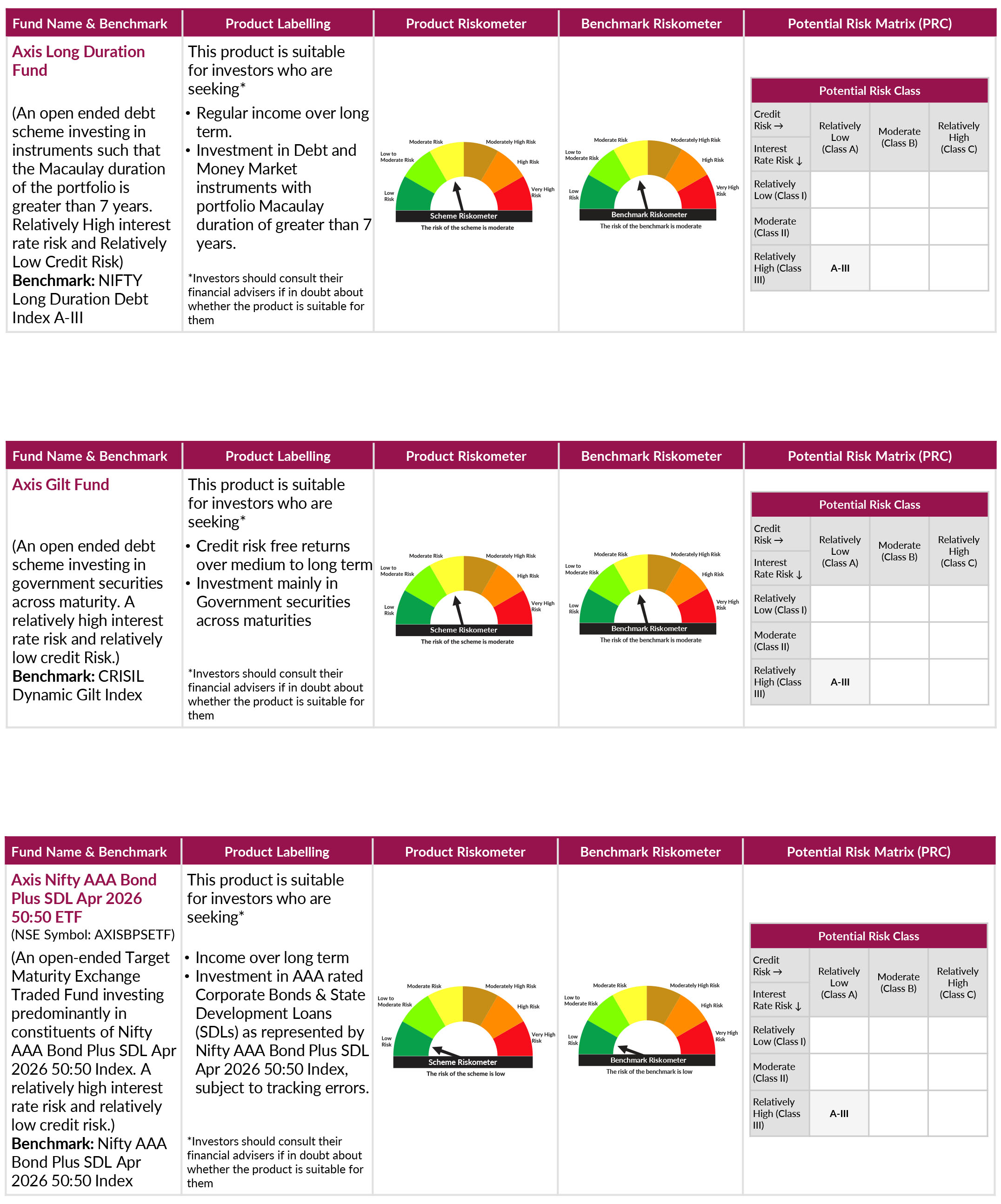 | AXIS GILT FUND (An open ended debt scheme investing in government securities across maturity) This product is suitable for investors who are seeking* • Credit risk free returns over medium to long term • Investment mainly in Government securities across maturities |