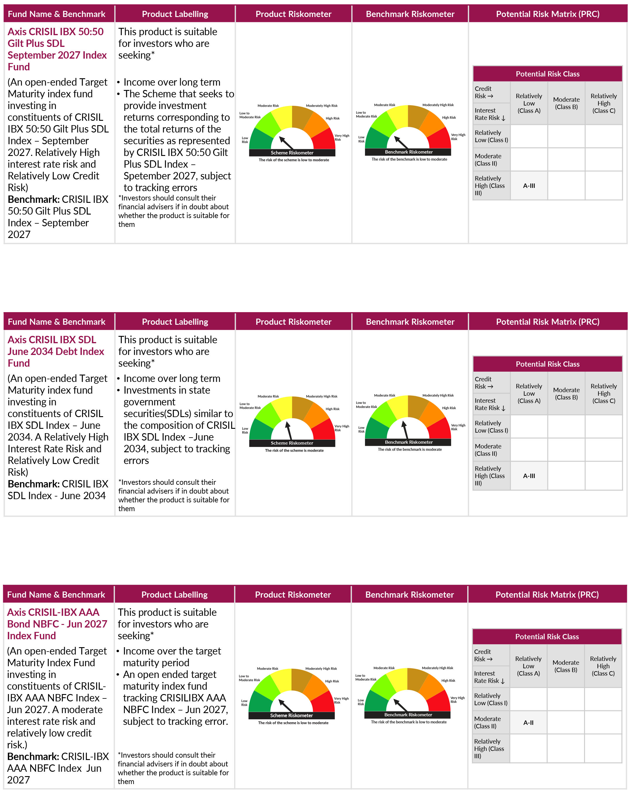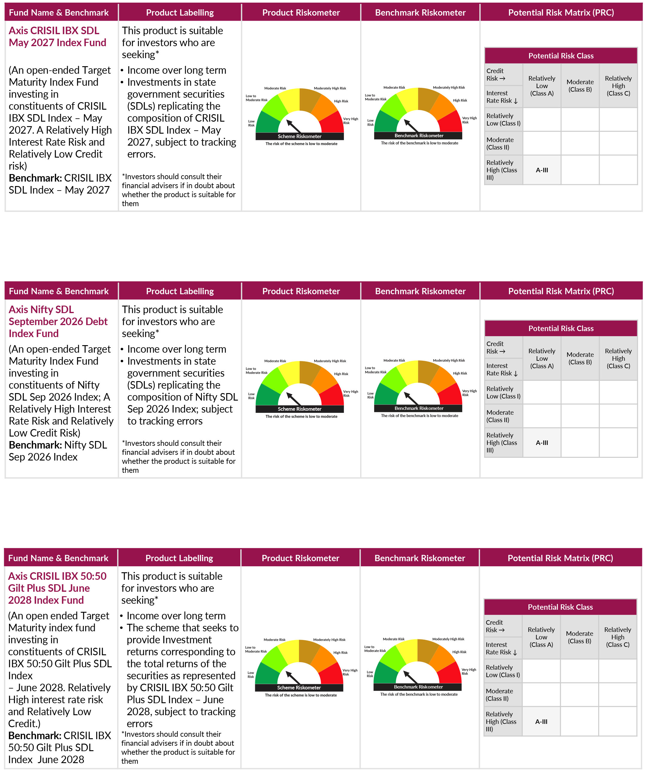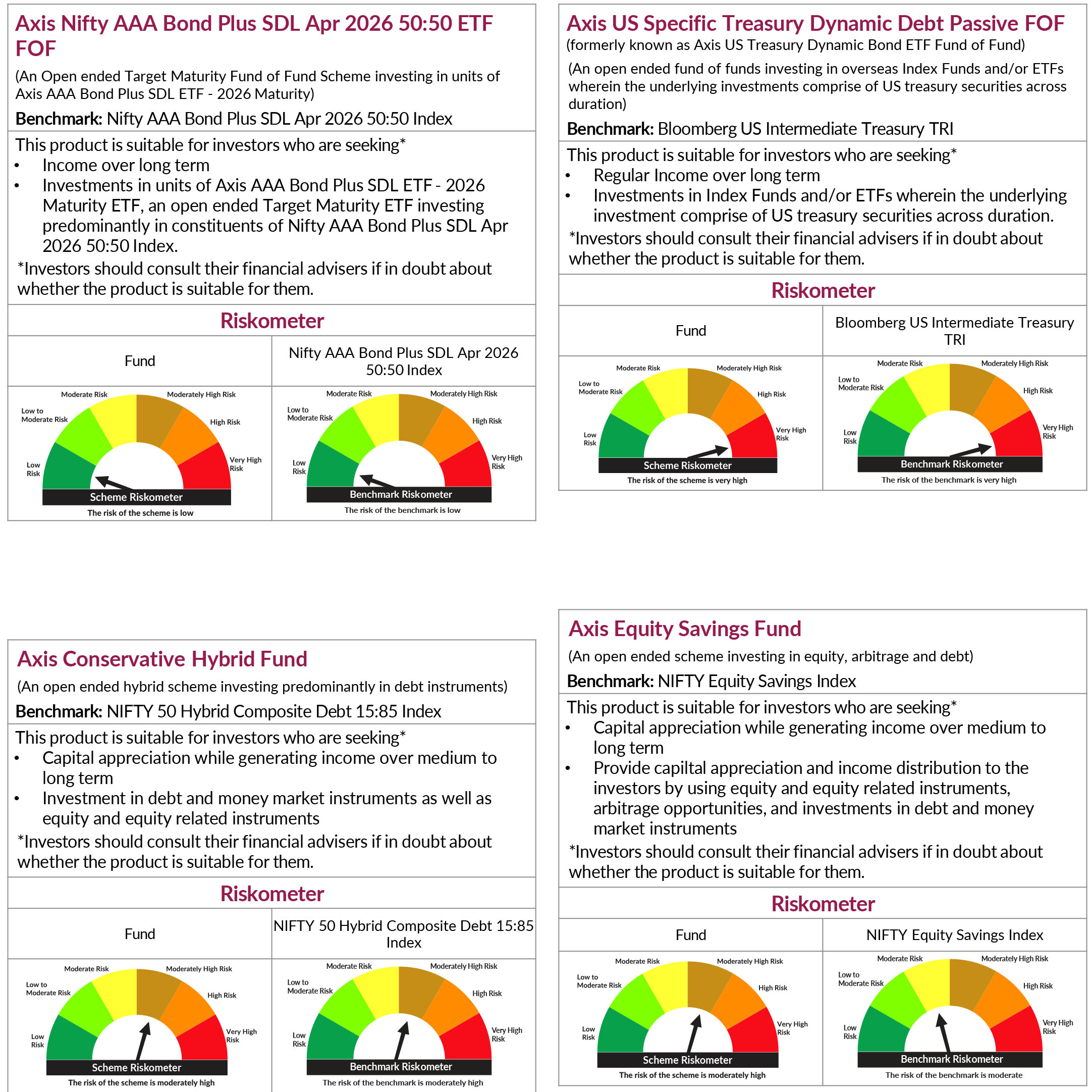 | AXIS ALL SEASONS DEBT FUND OF FUNDS (An open-ended fund of funds scheme investing in debt oriented mutual fund schemes) This product is suitable for investors who are seeking* • To generate optimal returns over medium term • Investment primarily in debt oriented mutual fund schemes |