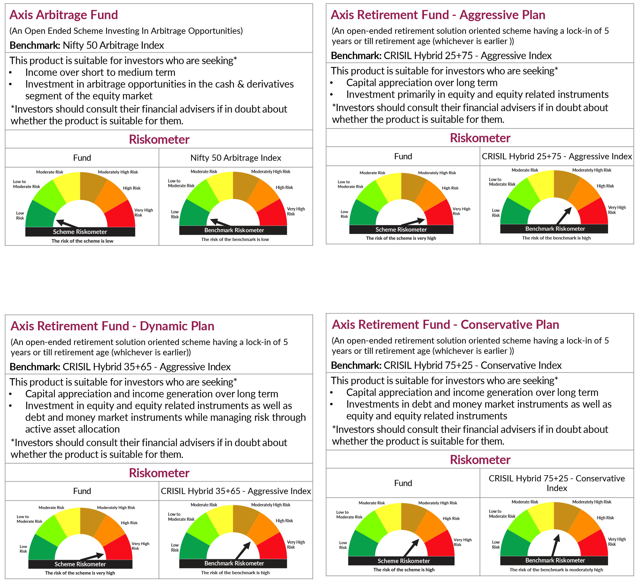 | AXIS ARBITRAGE FUND (An open ended scheme investing in arbitrage opportunities) This product is suitable for investors who are seeking* • Income over short to medium term • Investment in arbitrage opportunities in the cash & derivatives segment of the equity market |