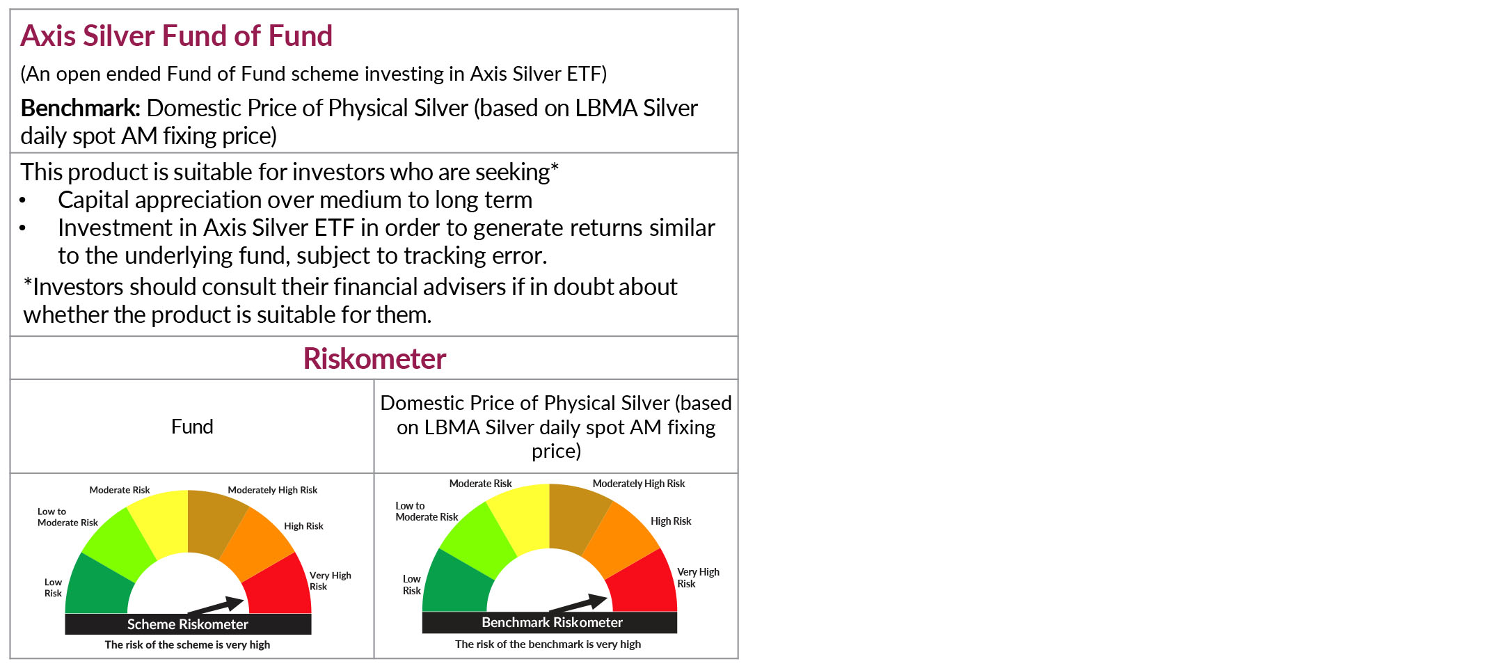 | AXIS GOLD FUND (An open ended fund of fund scheme investing in Axis Gold ETF) This product is suitable for investors who are seeking* • Capital Appreciation over medium to long term • Invests predominantly in Axis Gold ETF in order to generate returns similar to the underlying fund, subject to tracking error |