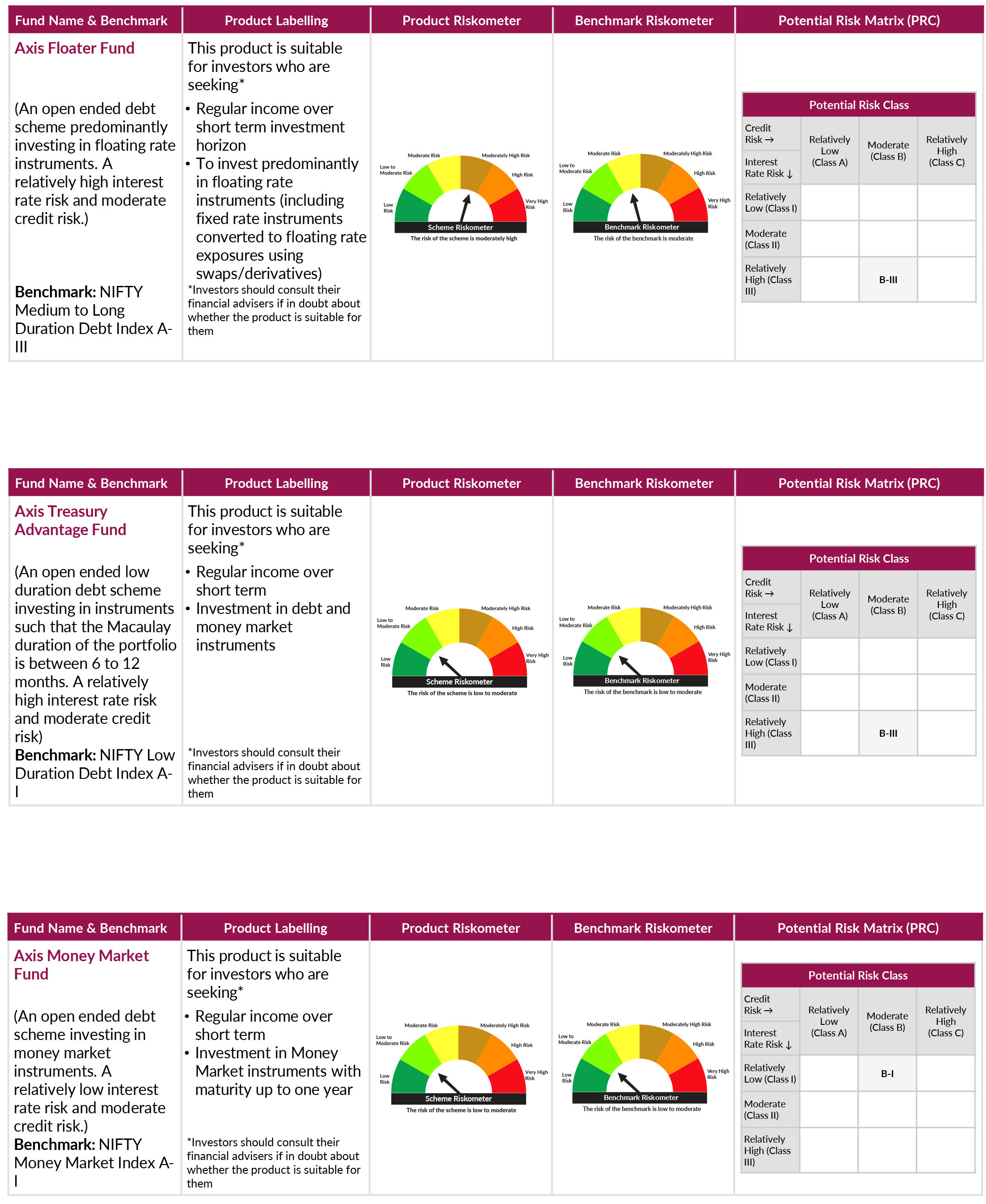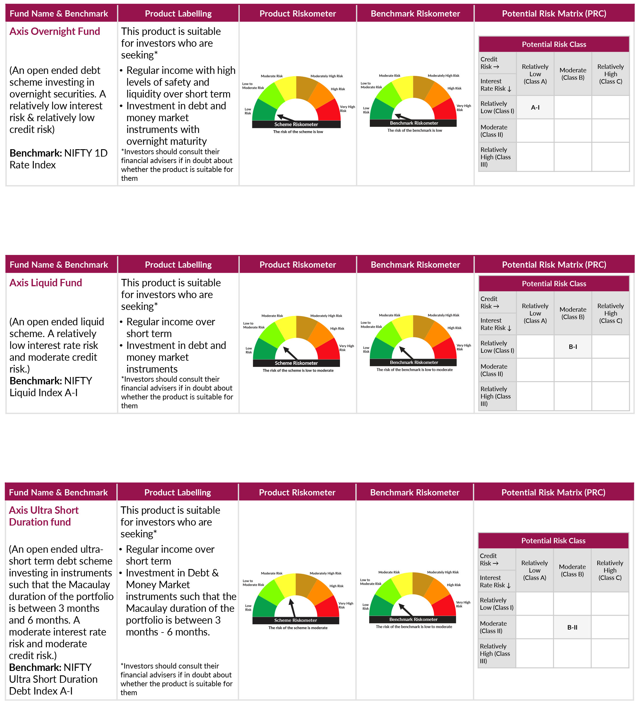 | AXIS OVERNIGHT FUND (An open-ended debt scheme investing in overnight securities) This product is suitable for investors who are seeking* • Regular income with high levels of safety and liquidity over short term. • Investment in debt and money market instruments with overnight maturity |