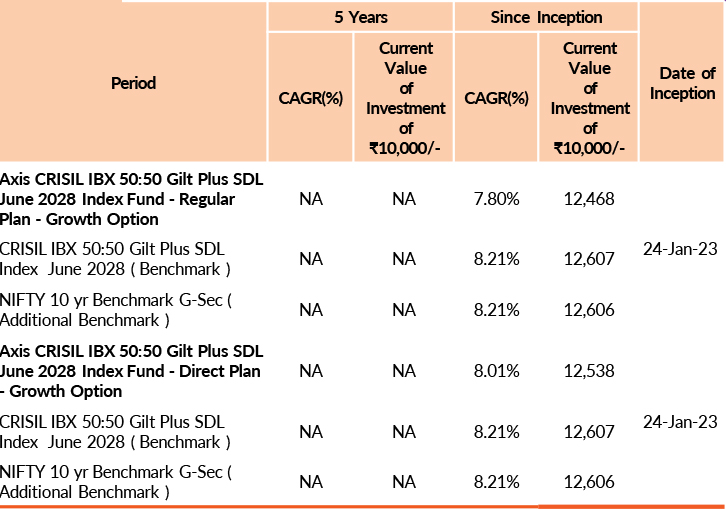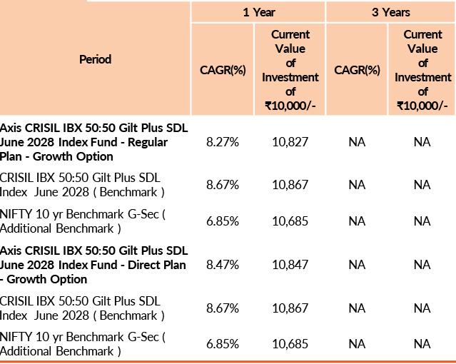 | Axis CRISIL IBX 50:50 Gilt Plus SDL June 2028 Index Fund | 31-Dec-2025 | -0.4 | - | - | - | -0.41 |