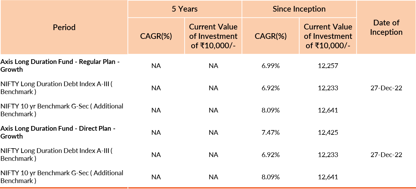 Past performance may or may not be sustained in future. Different plans have different expense structure. Devang Shah is managing the scheme since 27th December 2022 and he manages 23 schemes of Axis Mutual Fund & Hardik Shah is managing the scheme since 27th December 2022 and he manages 18 schemes of Axis Mutual Fund . Please refer to annexure for performance of schemes managed by the fund manager. Returns greater than 1 year period are compounded annualised (CAGR). Face Value per unit : ₹1000.