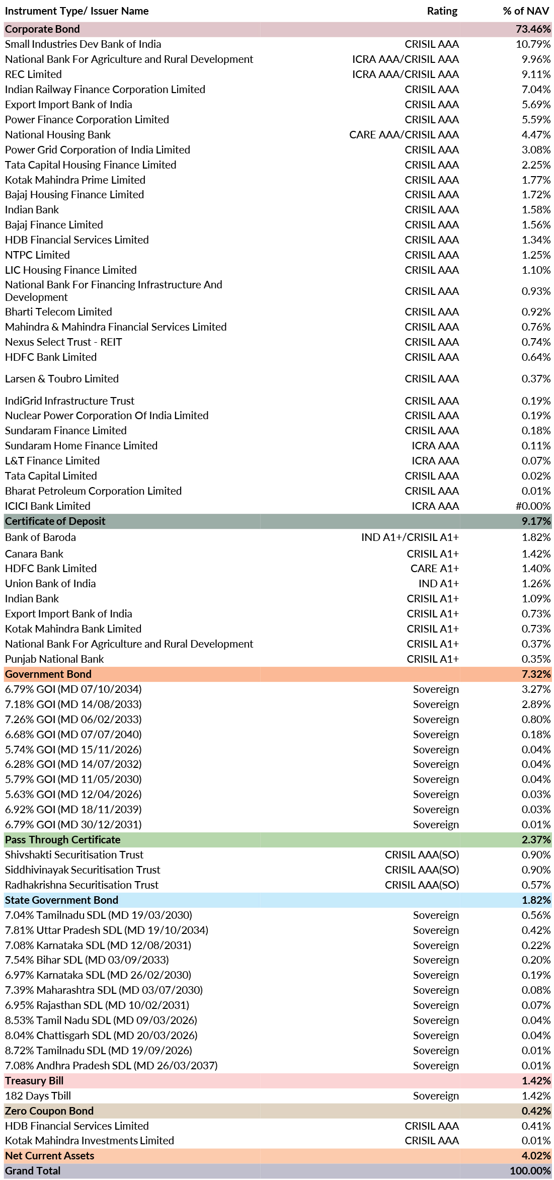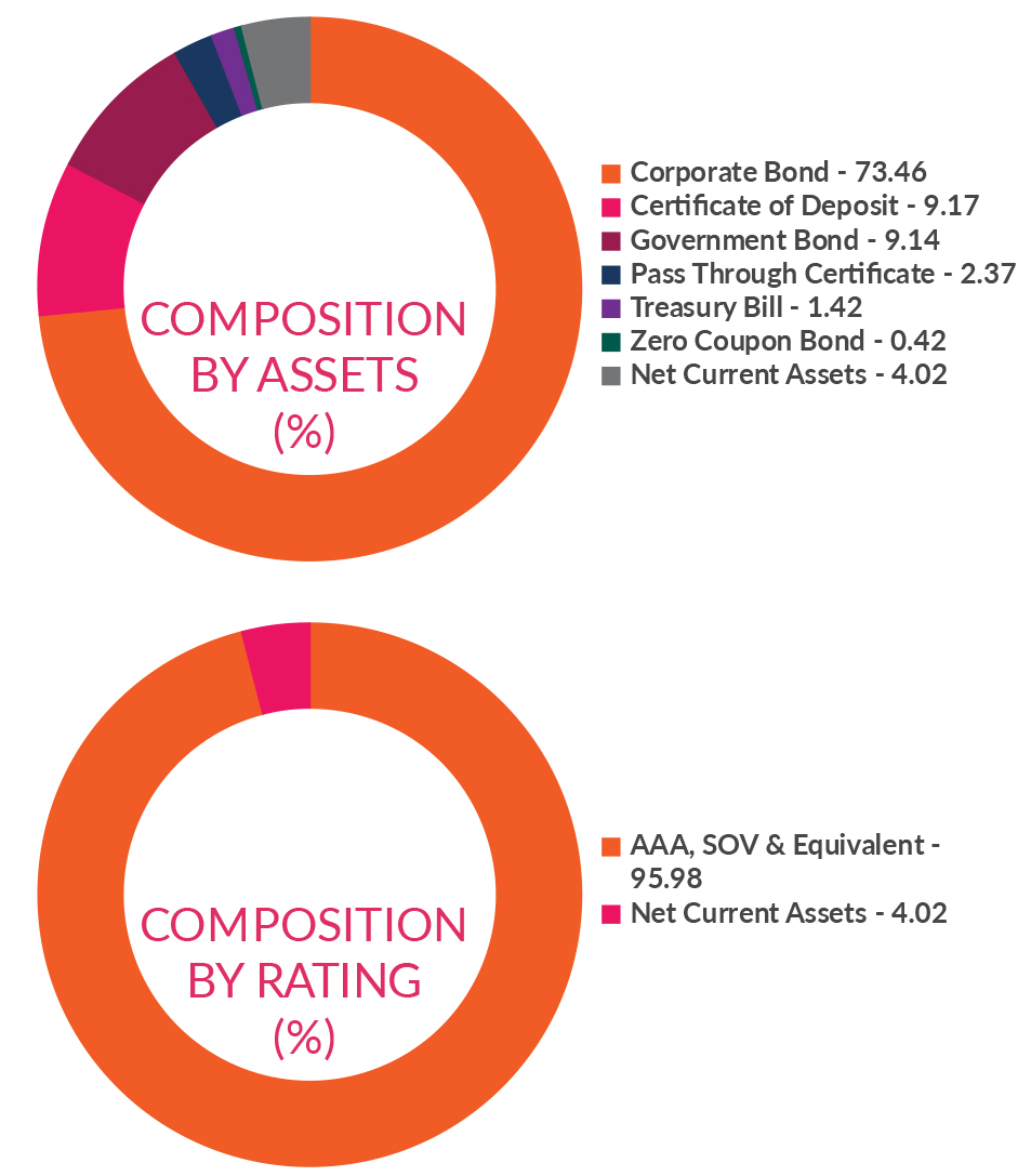 *in case of semi annual YTM, it will be annualised * As per AMFI Best Practice Guidelines Circular No. 88/2020-21-Additional Disclosures in Monthly Factsheets. For instruments with put/call option, the put/call date has been taken as the maturity date. This should not be taken as an indication of the returns that maybe generated by the fund and the securities bought by the fund may or may not be held till their respective maturities. The calculation is based on the invested corpus of the debt portfolio. |