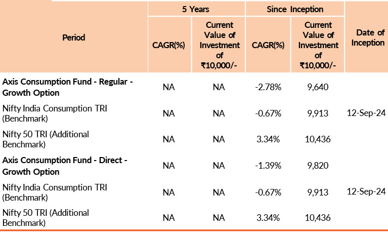 Past performance may or may not be sustained in future.Different plans have different expense structure. Hitesh Das is managing the scheme since 12th September 2024 and he manages 4 schemes of Axis Mutual Fund & Krishnaa N is managing the scheme since 12th September 2024 and she manages 24 schemes of Axis Mutual Fund .Please refer to annexure for performance of all schemes managed by the fund manager. Returns greater than 1 year period are compounded annualised (CAGR). Face Value per unit : ₹ 10.