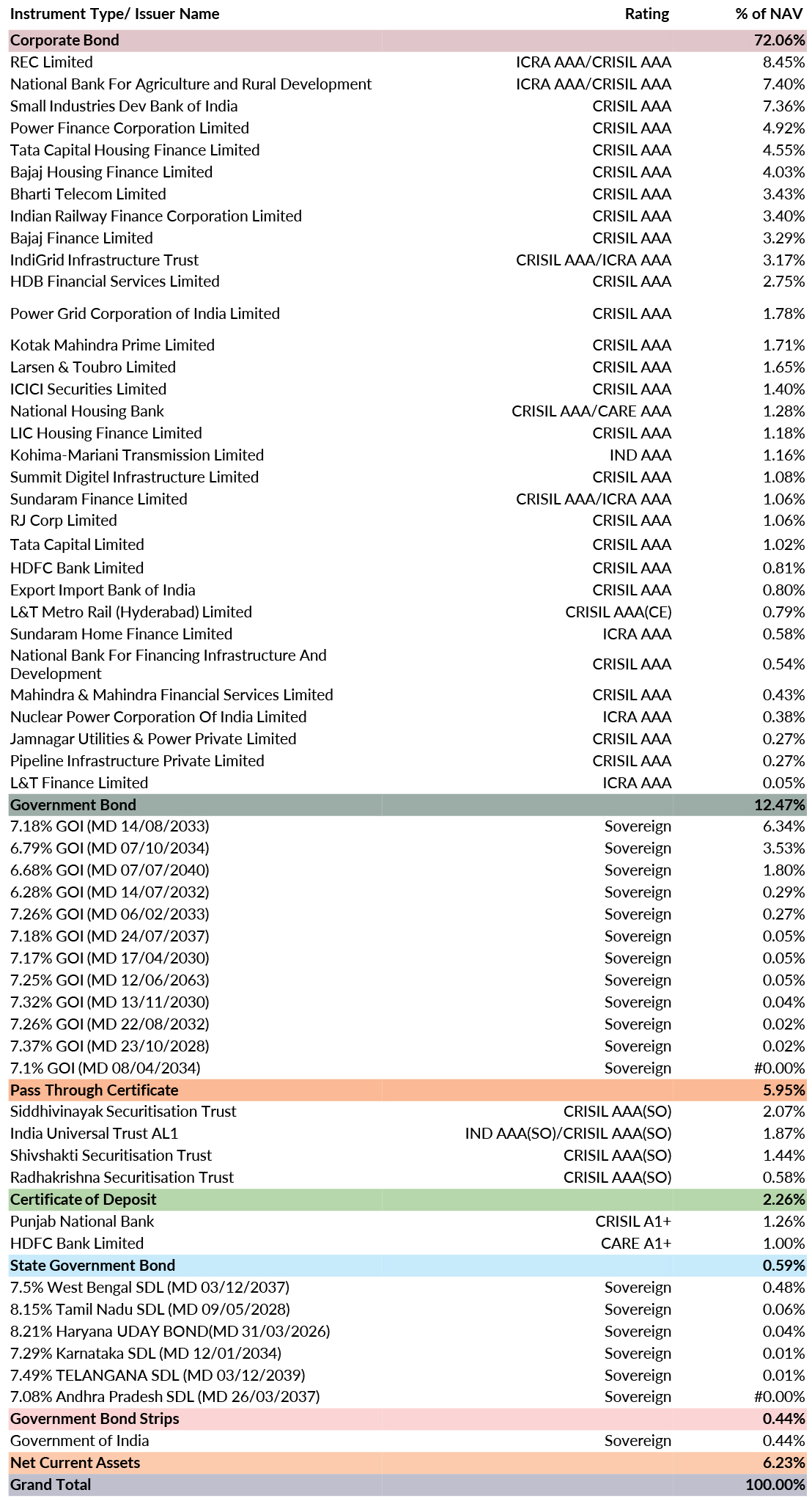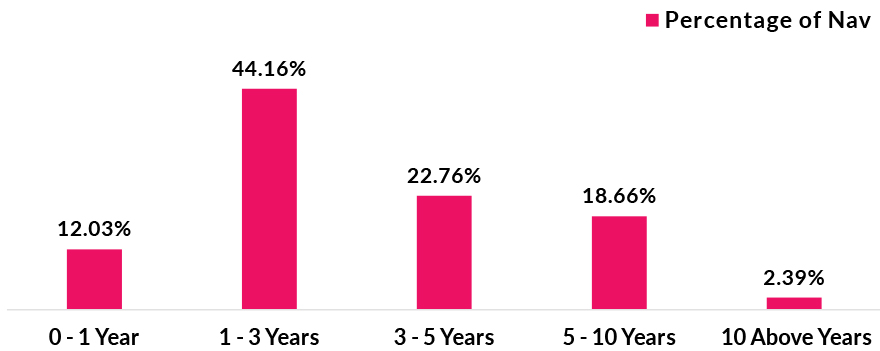 *in case of semi annual YTM, it will be annualised As per AMFI Best Practices Guidelines Circular No. 88 / 2020 -21-Additional Disclosures in Monthly Factsheets. For instruments with put/call option, the put/call date has been taken as the maturity date. This should not be taken as an indication of the returns that maybe generated by the fund and the securities bought by the fund may or may not be held till their respective maturities. The calculation is based on the invested corpus of the debt portfolio. |