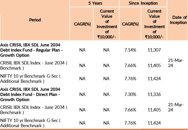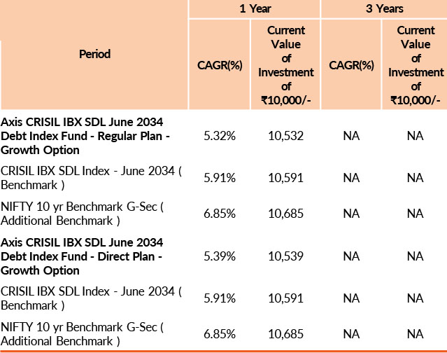 | Axis CRISIL IBX SDL June 2034 Debt Index Fund | 31-Dec-2025 | -0.59 | - | - | - | -0.52 |