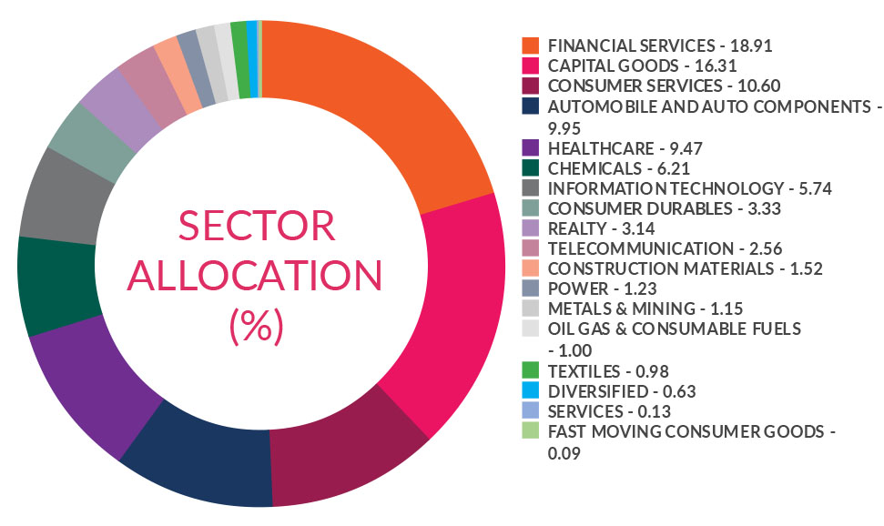 ^^Market caps are defined as per SEBI regulations as below: a. Large Cap: 1st -100th company in terms of full market capitalization. b. Mid Cap: 101st -250th company in terms of full market capitalization. c. Small Cap: 251st company onwards in terms of full market capitalization.