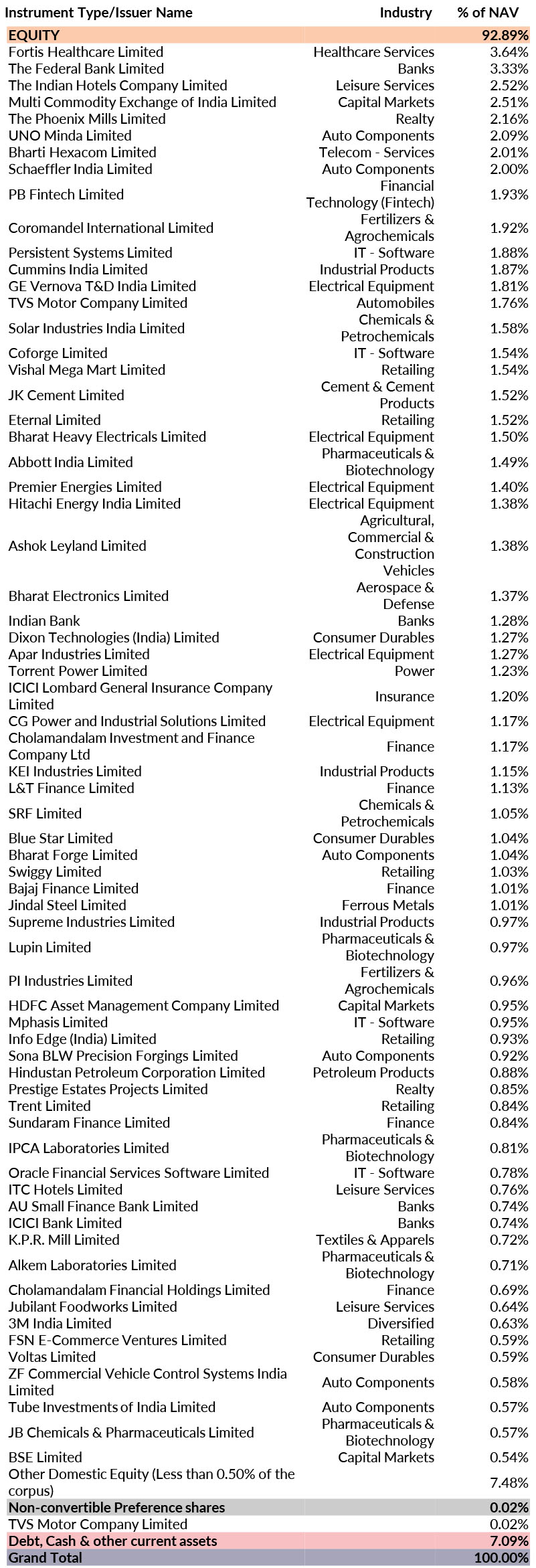 (An Open Ended Equity Scheme Predominantly Investing In Mid Cap Stocks)