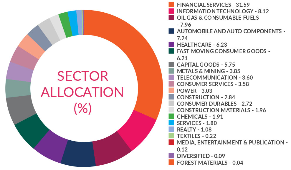 ^^Market caps are defined as per SEBI regulations as below: a. Large Cap: 1st -100th company in terms of full market capitalization. b. Mid Cap: 101st -250th company in terms of full market capitalization. c. Small Cap: 251st company onwards in terms of full market capitalization.