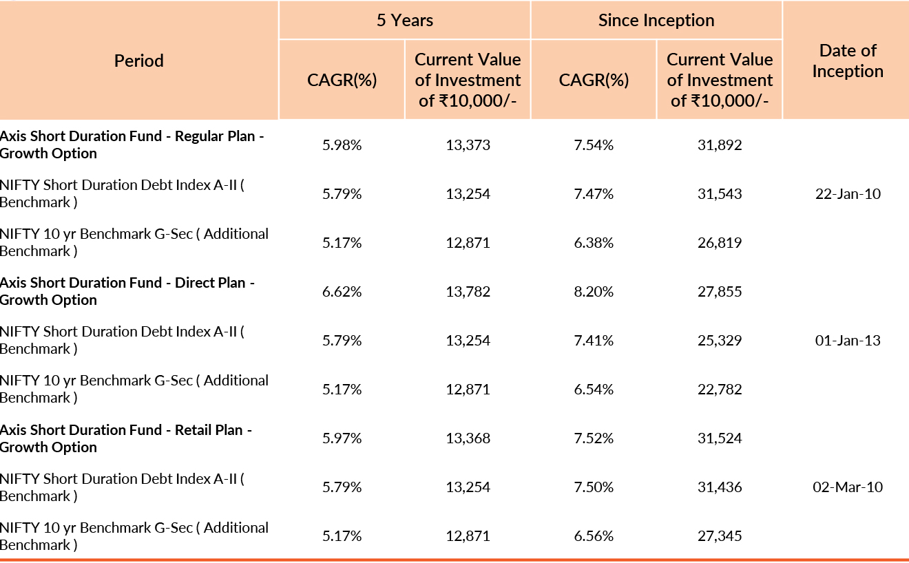 BENCHMARK | NIFTY Short Duration Debt Index A-II |