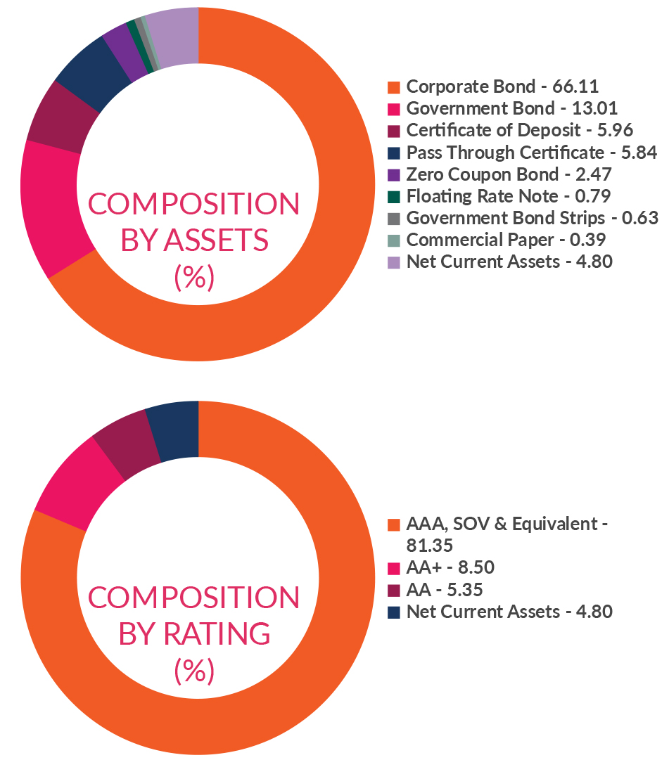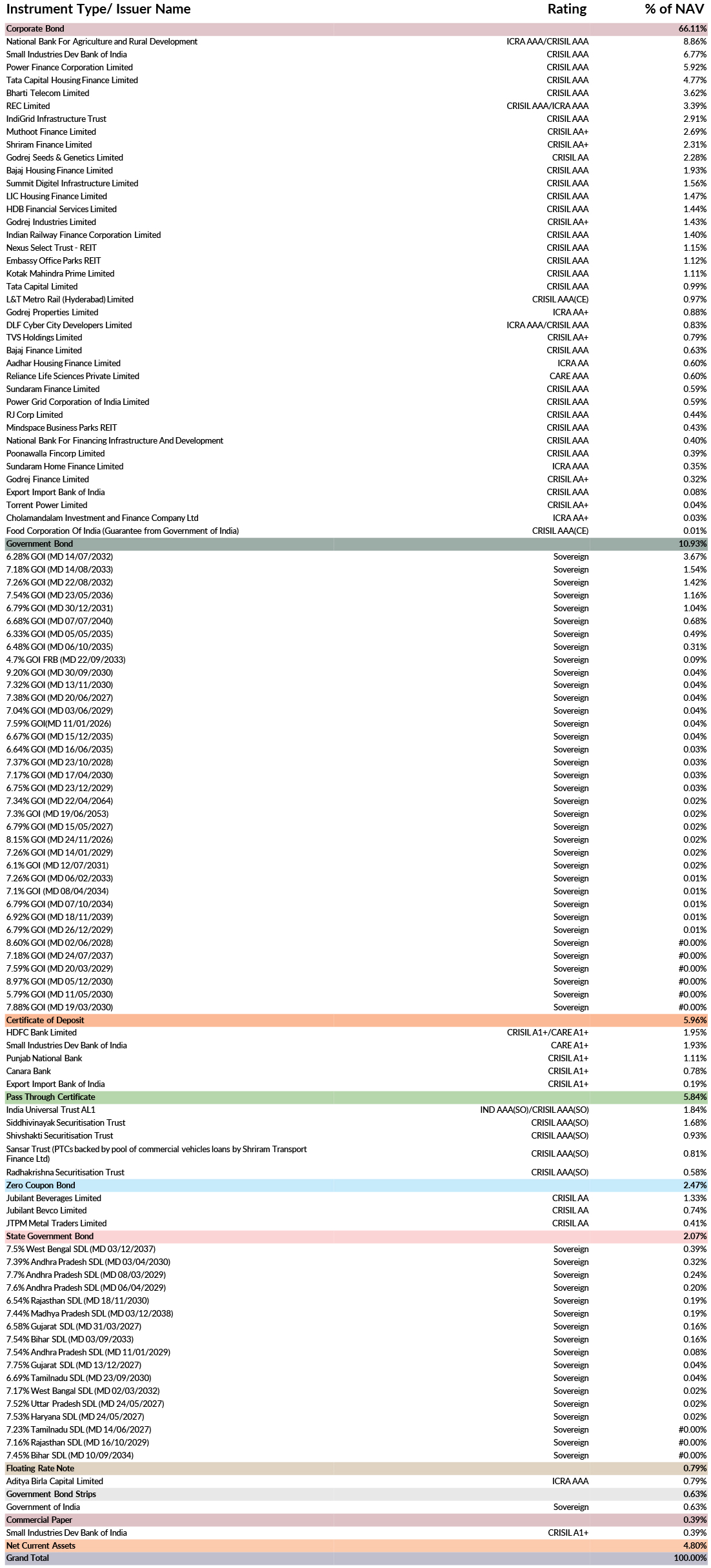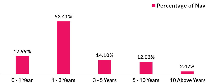 | *in case of semi annual YTM, it will be annualised * As per AMFI Best Practices Guidelines Circular No. 88 / 2020 -21-Additional Disclosures in Monthly Factsheets. For instruments with put/call option, the put/call date has been taken as the maturity date. This should not be taken as an indication of the returns that maybe generated by the fund and the securities bought by the fund may or may not be held till their respective maturities. The calculation is based on the invested corpus of the debt portfolio. |
