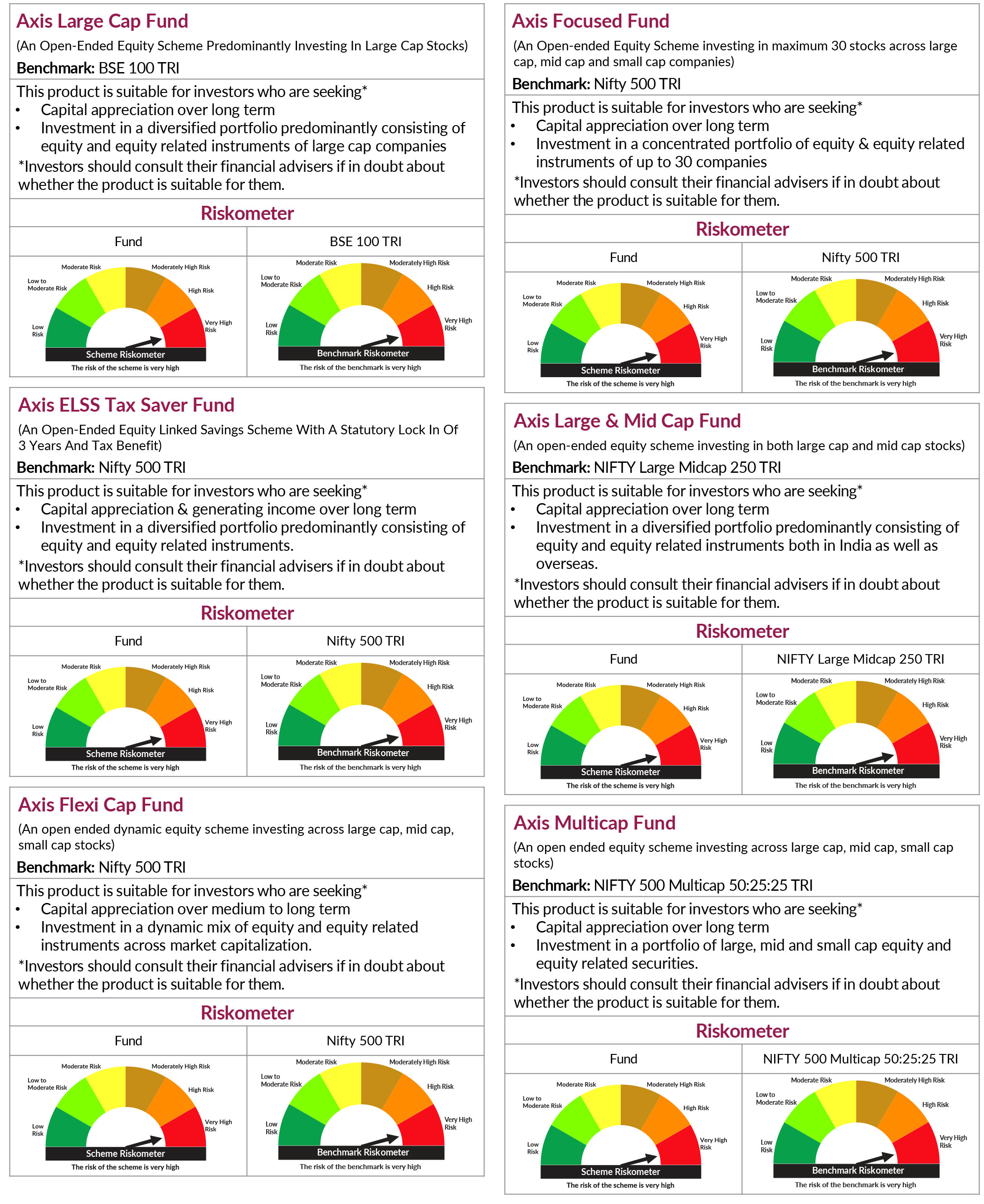 | AXIS CAPITAL BUILDER FUND - SERIES 1 (A close ended equity scheme investing across large caps, mid caps and small cap stocks) This product is suitable for investors who are seeking* • Capital appreciation over long term • Investment in a diversified portfolio of predominantly equity and equity related instruments across market capitalisation. |