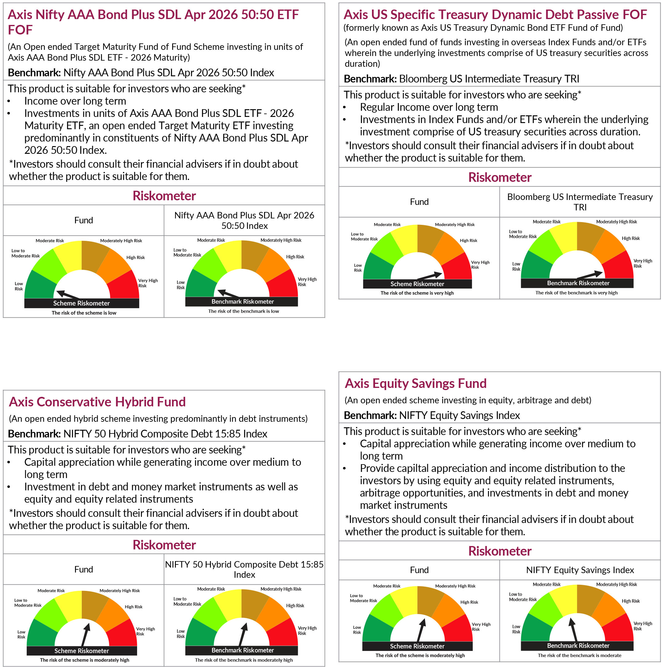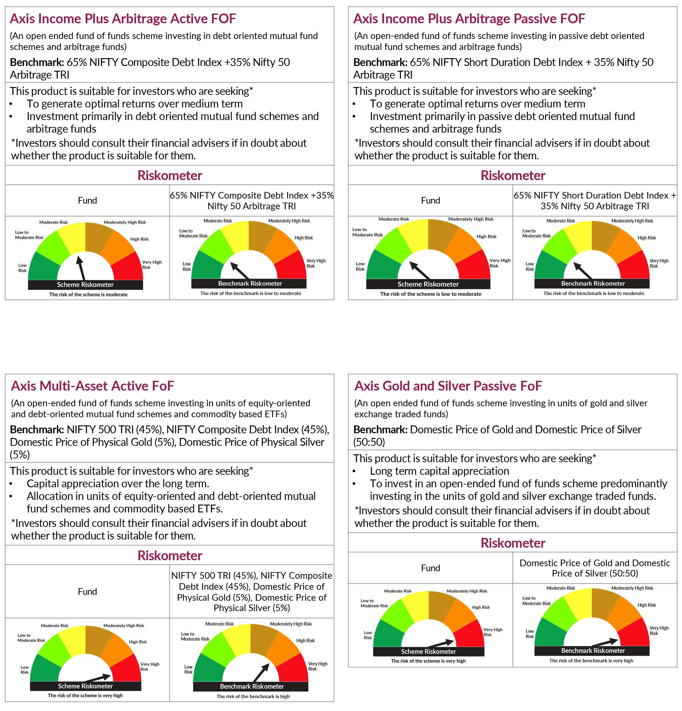 | AXIS ALL SEASONS DEBT FUND OF FUNDS (An open-ended fund of funds scheme investing in debt oriented mutual fund schemes) This product is suitable for investors who are seeking* • To generate optimal returns over medium term • Investment primarily in debt oriented mutual fund schemes |
