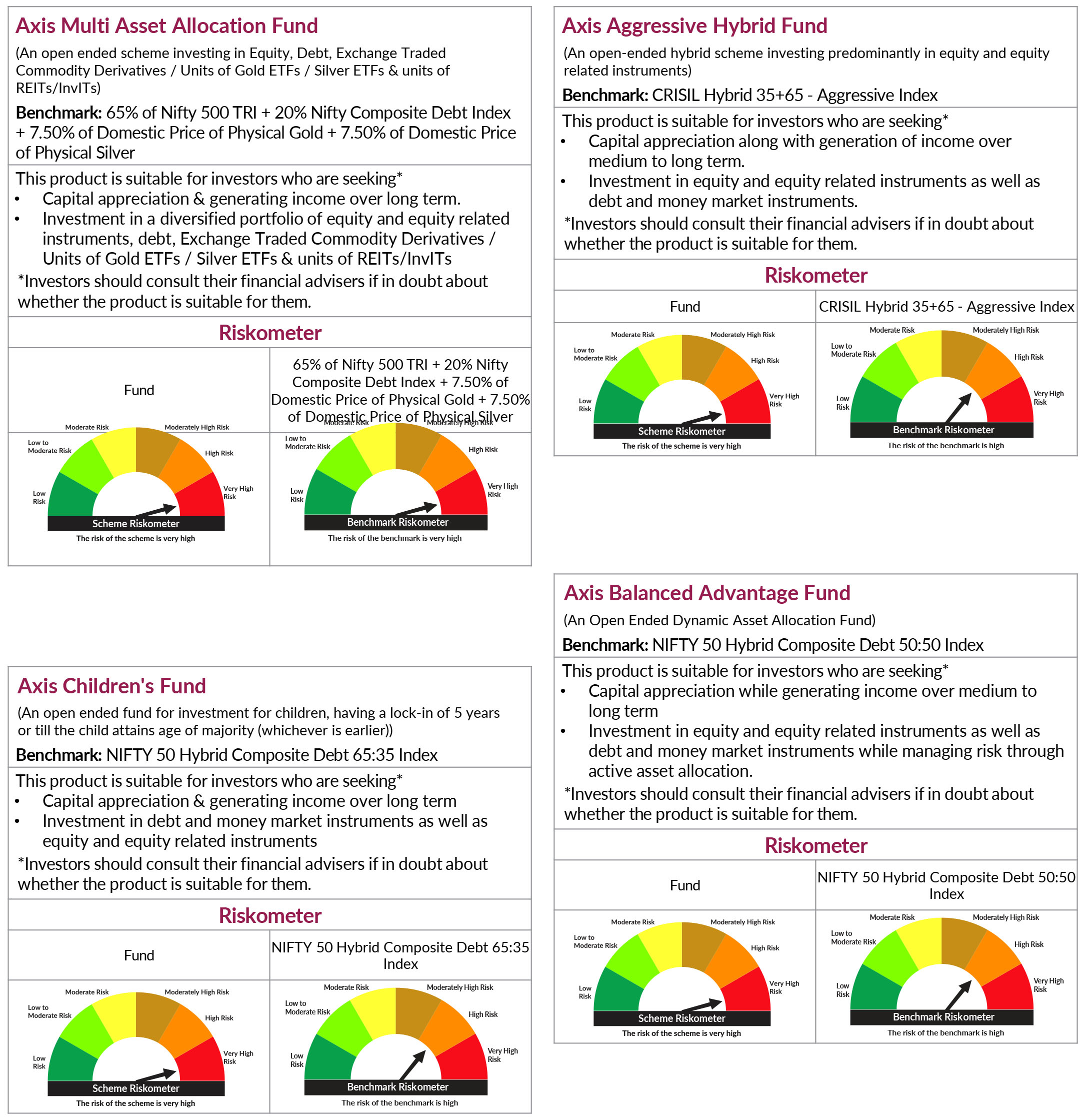 | AXIS TRIPLE ADVANTAGE FUND (An open ended scheme investing in equity, debt and gold) This product is suitable for investors who are seeking* • Capital appreciation & generating income over long term • Investment in a diversified portfolio of equity and equity related instruments, fixed income instruments & gold exchange traded funds |