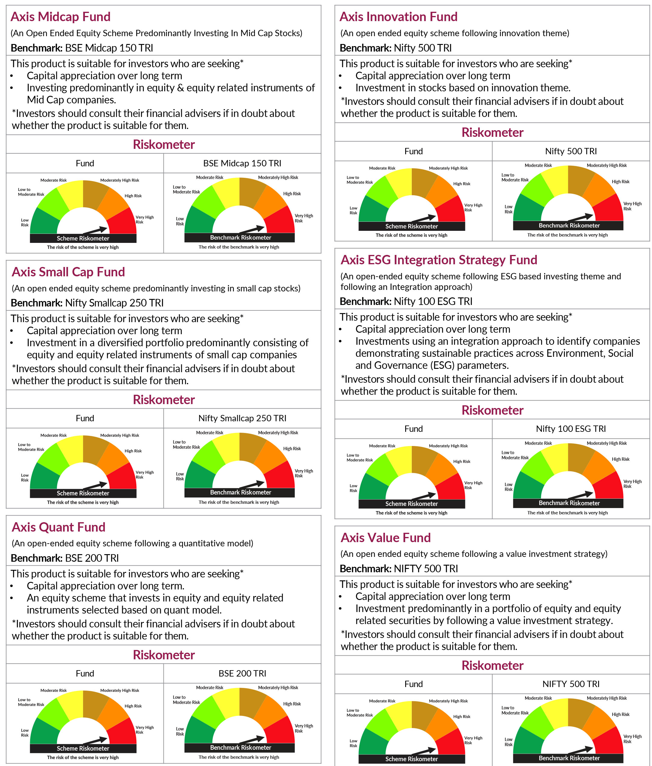 | AXIS CAPITAL BUILDER FUND - SERIES 4 (A close ended equity scheme investing across large caps, mid caps and small cap stocks) This product is suitable for investors who are seeking* • Capital appreciation over long term • Investment in a diversified portfolio of predominantly equity and equity related instruments across market capitalisation. |