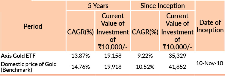 TRACKING ERROR | 0.24% (As compared to Prices of Gold) |