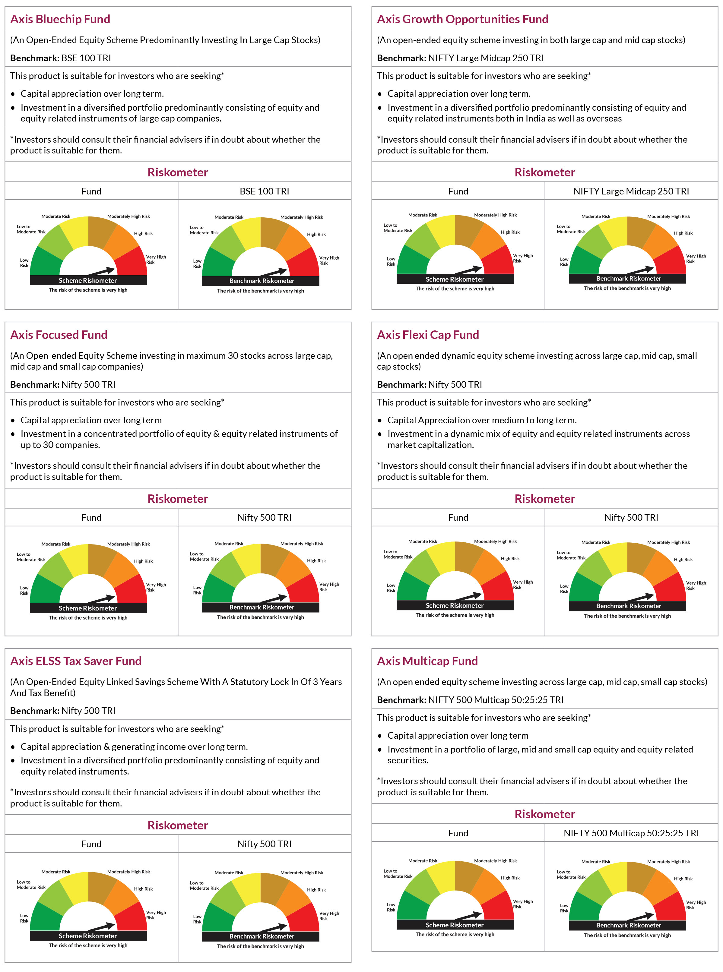 | AXIS CAPITAL BUILDER FUND - SERIES 1 (A close ended equity scheme investing across large caps, mid caps and small cap stocks) This product is suitable for investors who are seeking* • Capital appreciation over long term • Investment in a diversified portfolio of predominantly equity and equity related instruments across market capitalisation. |
