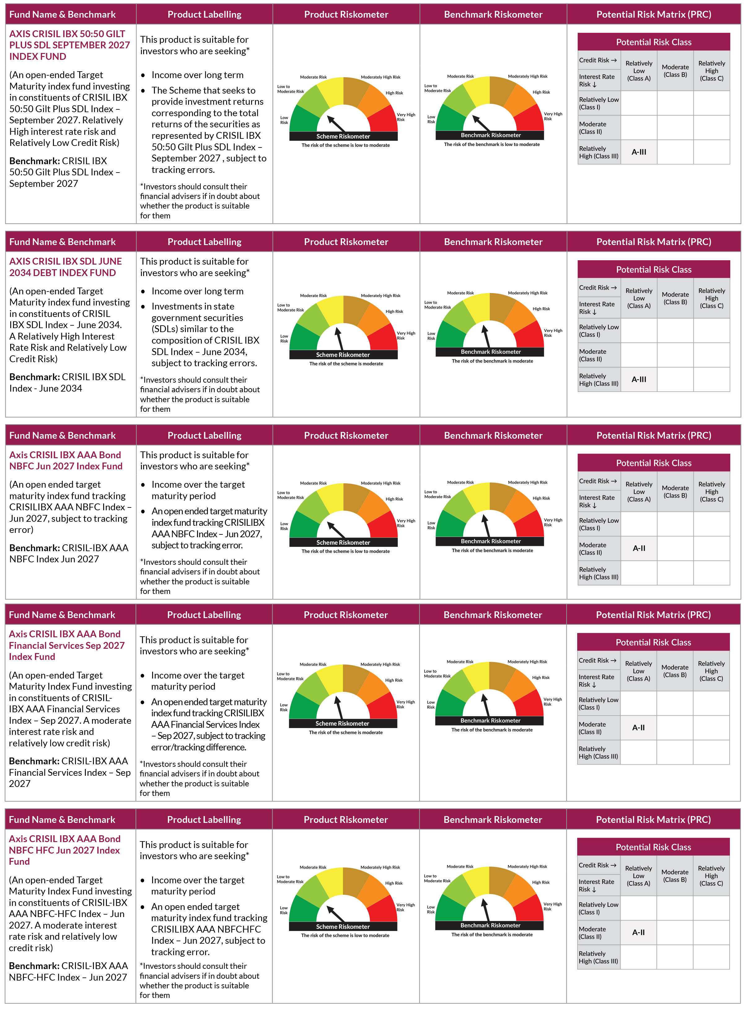| AXIS ALL SEASONS DEBT FUND OF FUNDS (An open-ended fund of funds scheme investing in debt oriented mutual fund schemes) This product is suitable for investors who are seeking* • To generate optimal returns over medium term • Investment primarily in debt oriented mutual fund schemes |