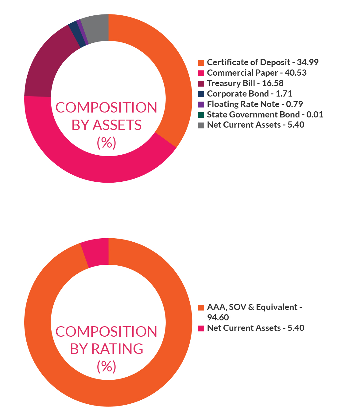 ![]() | Residual Maturity | 41 days | Modified Duration* | 40 days | Macaulay Duration* | 40 days | Annualised Portfolio YTM* | 7.23% | *in case of semi annual YTM, it will be annualised |