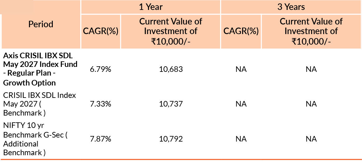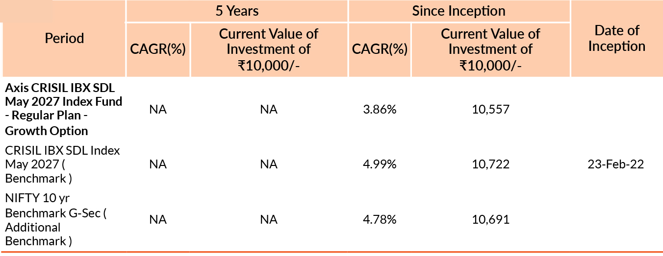 Axis CRISIL IBX SDL May 2027 Index Fund | 31 Jul 2023 | -0.54% | -- | -- | -- | -1.13% |