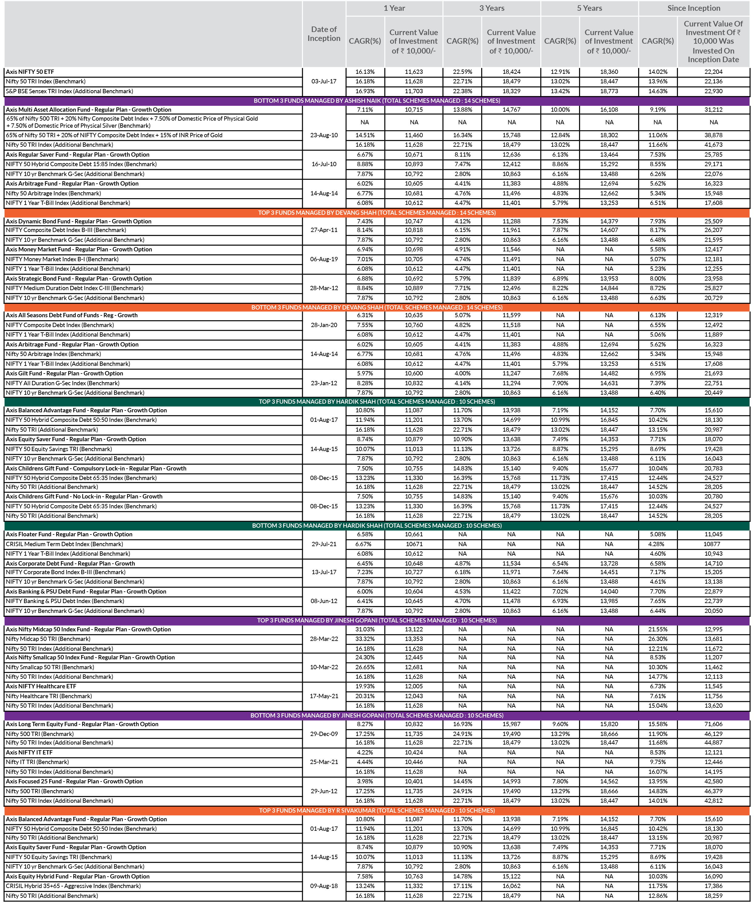 ANNEXURE FOR RETURNS OF ALL THE SCHEMES