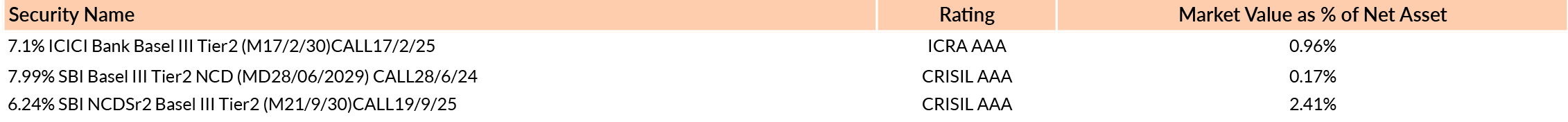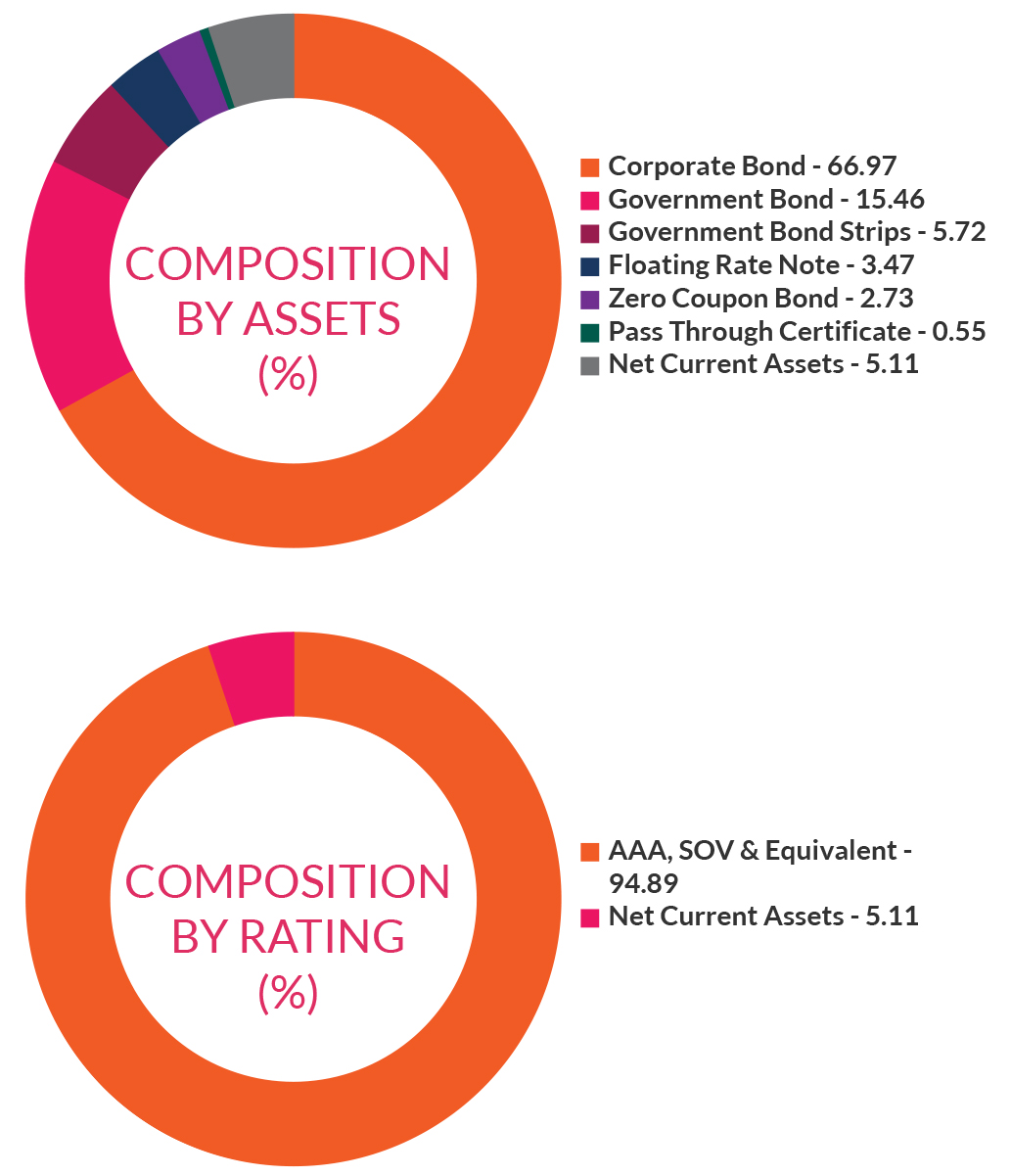 * As per AMFI Best Practice Guidelines Circular No. 88/2020-21-Additional Disclosures in Monthly Factsheets. For instruments with put/call option, the put/call date has been taken as the maturity date. & The yield to maturity given above is based on the portfolio of funds as on date given above. This should not be taken as an indication of the returns that maybe generated by the fund and the securities bought by the fund may or may not be held till their respective maturities. The calculation is based on the invested corpus of the debt portfolio | ||