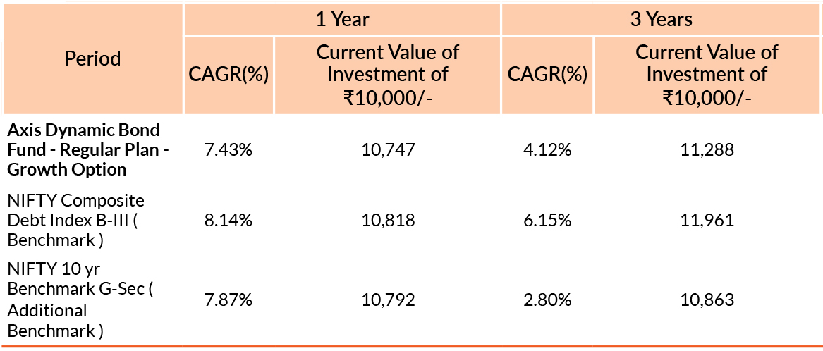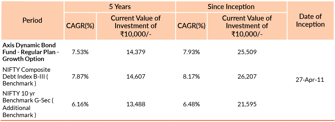 Past performance may or may not be sustained in future. Different plans have different expense structure. R Sivakumar is managing the scheme since 27th April 2011 and he manages 10 schemes of Axis Mutual Fund & Devang Shah is managing the scheme since 5th November 2012 and he manages 14 schemes of Axis Mutual Fund. Please refer to annexure for performance of all schemes managed by the fund managers. Returns greater than 1 year period are compounded annualised (CAGR). Face Value per unit : ₹ 10.