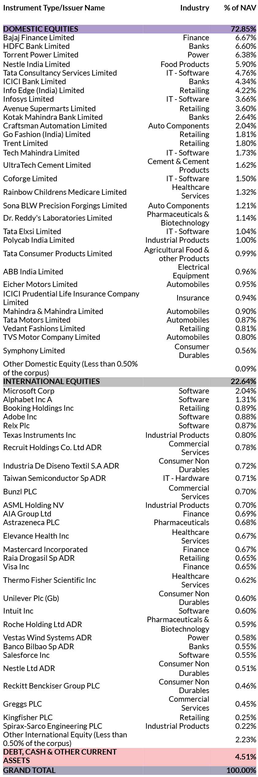 Note: Industry classification is done as per Global Industry Classification Standard (GICS) by MSCI and Standard & Poor's for Foreign Equity