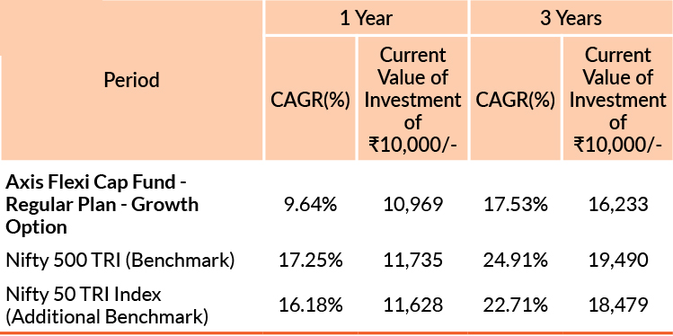Past performance may or may not be sustained in future. Different plans have different expense structure. Shreyash Devalkar is managing the scheme since 20th November 2017 and he manages 6 schemes of Axis Mutual Fund & Vinayak Jayanath is managing the scheme since 17th January 2023 and he manages 17 schemes of Axis Mutual Fund . Please refer to annexure for performance of all schemes managed by the fund manager. Returns greater than 1 year period are compounded annualised (CAGR). Face Value per unit : ₹ 10.