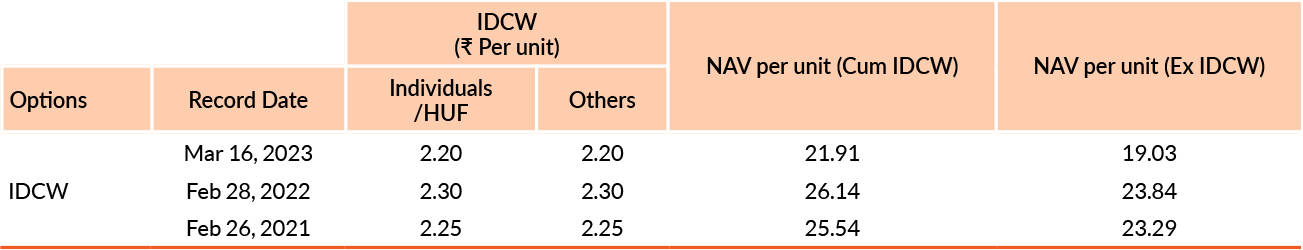 Face value of units is ₹ 10. IDCW means Income Distribution cum Capital Withdrawal.