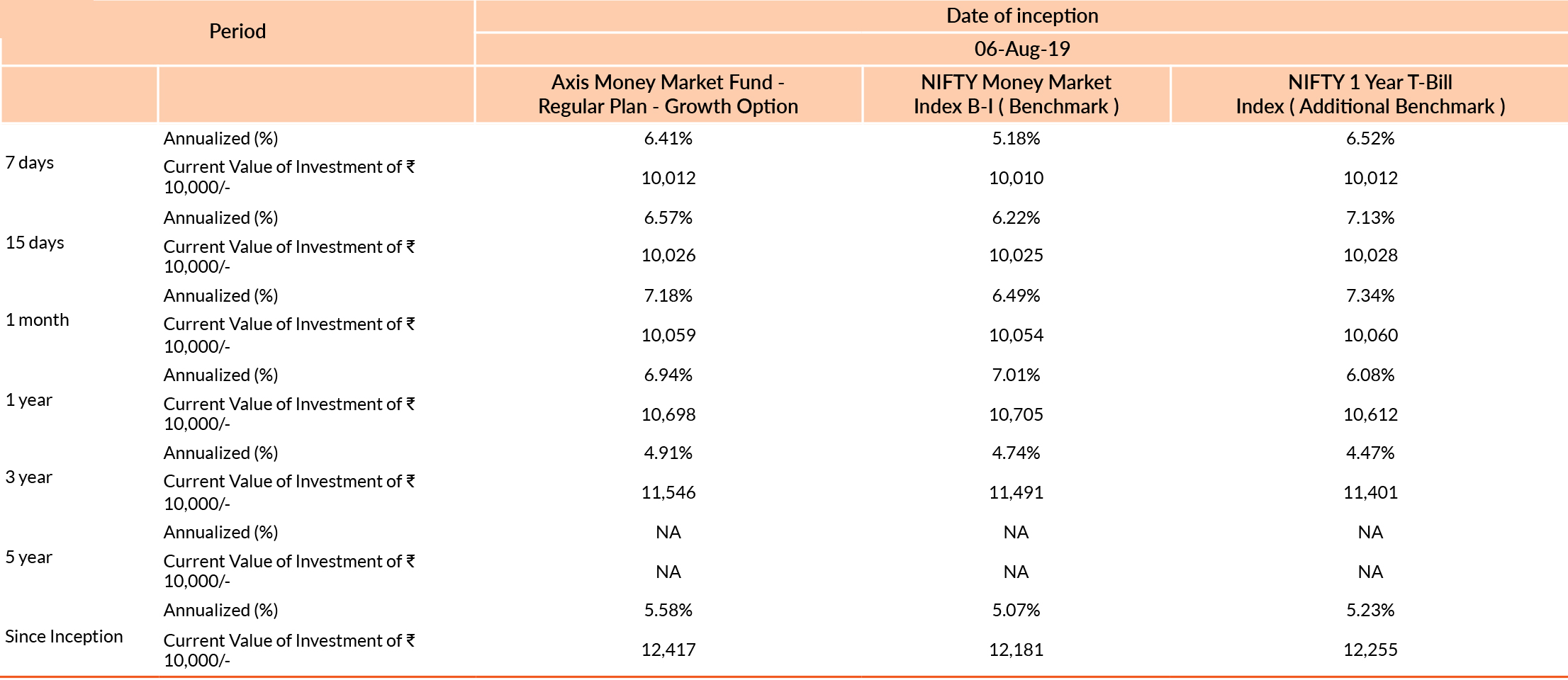 Past performance may or may not be sustained in future. Different plans have different expense structure. Aditya Pagaria is managing the scheme since 6th August 2019 and he manages 17 schemes of Axis Mutual Fund & Devang Shah is managing the scheme since 6th August 2019 and he manages 14 schemes of Axis Mutual Fund & Sachin Jain is managing the scheme since 9th November 2021 and he manages 15 schemes of Axis Mutual Fund . Please refer to annexure for performance of schemes managed by the fund managers. Returns greater than 1 year eriod are compounded annualised (CAGR). Face Value per unit : ₹ 1,000.
