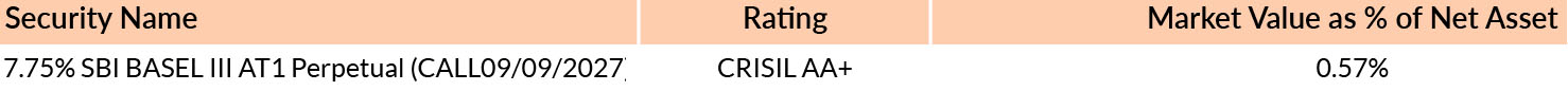 *in case of semi annual YTM, it will be annualised *As per AMFI Best Practices Guidelines Circular No. 88 / 2020 -21-Additional Disclosures in Monthly Factsheets. @ Based on debt portfolio only. For instruments with put/call option, the put/call date has been taken as the maturity date. & The yield to maturity given above is based on the portfolio of funds as on date given above. This should not be taken as an indication of the returns that maybe generated by the fund and the securities bought by the fund may or may not be held till their respective maturities. The calculation is based on the invested corpus of the debt portfolio. | ||