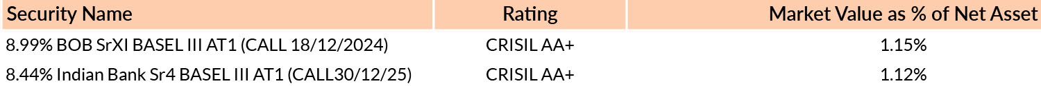 *in case of semi annual YTM, it will be annualised *As per AMFI Best Practices Guidelines Circular No. 88 / 2020 -21-Additional Disclosures in Monthly Factsheets. @ Based on debt portfolio only. For instruments with put/call option, the put/call date has been taken as the maturity date. & The yield to maturity given above is based on the portfolio of funds as on date given above. This should not be taken as an indication of the returns that maybe generated by the fund and the securities bought by the fund may or may not be held till their respective maturities. The calculation is based on the invested corpus of the debt portfolio. | ||