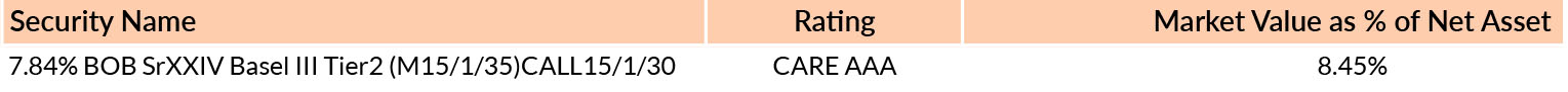 *in case of semi annual YTM, it will be annualised *As per AMFI Best Practices Guidelines Circular No. 88 / 2020 -21-Additional Disclosures in Monthly Factsheets. @ Based on debt portfolio only. For instruments with put/call option, the put/call date has been taken as the maturity date. & The yield to maturity given above is based on the portfolio of funds as on date given above. This should not be taken as an indication of the returns that maybe generated by the fund and the securities bought by the fund may or may not be held till their respective maturities. The calculation is based on the invested corpus of the debt portfolio. | ||