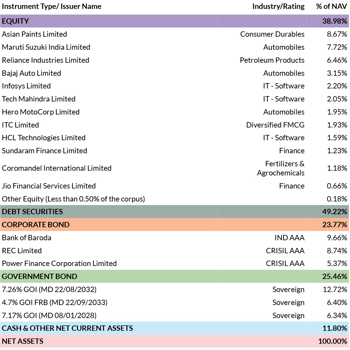 BENCHMARK | NIFTY 50 Hybrid Short Duration Debt 25:75 Index |