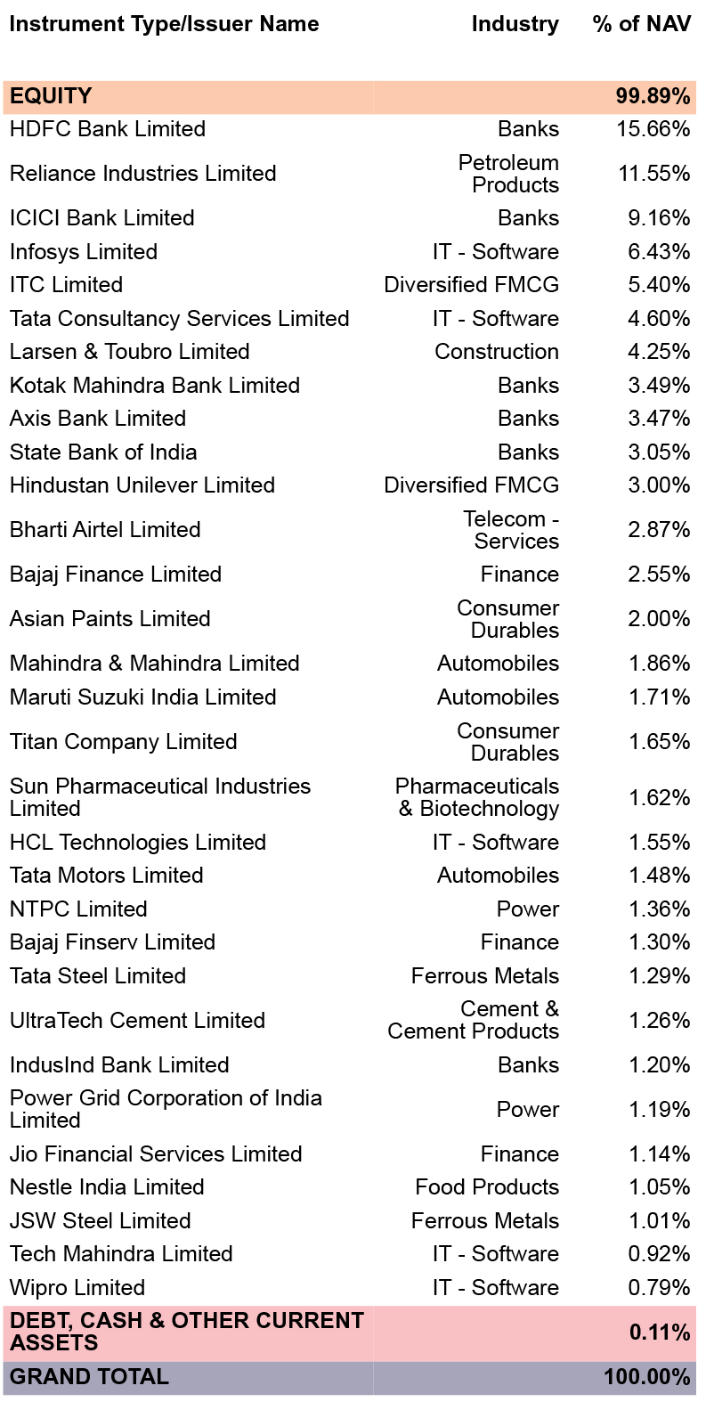 Since the fund has not completed 1-year annualized tracking error is taken from the launch date of the scheme. The tracking error may look optically elevated on account of deployment during the first few days of the scheme. This effect is transitionary in nature and normalizes as the fund completes 1 year since fund launch.