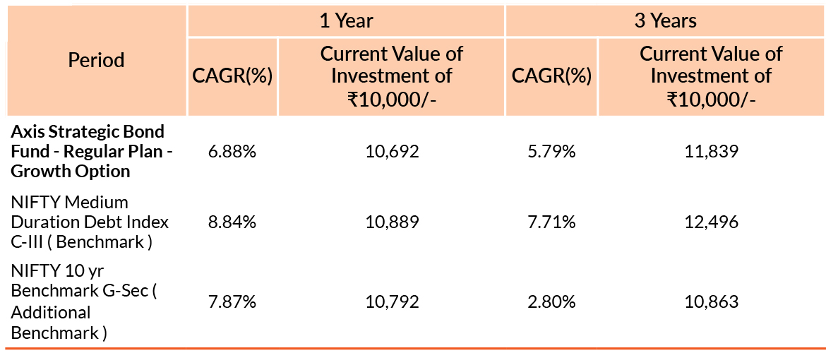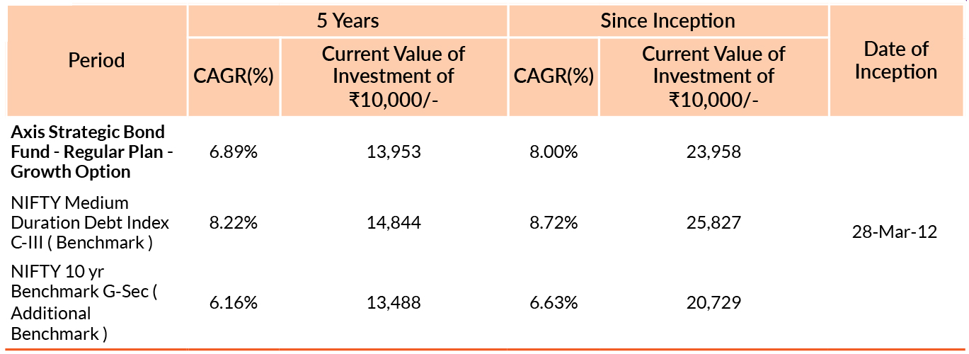 Past performance may or may not be sustained in future. Different plans have different expense structure. Devang Shah is managing the scheme since 5th November 2012 and he manages 14 schemes of Axis Mutual Fund & Akhil Thakker is managing the scheme since 1st February 2023 and he manages 2 schemes of Axis Mutual Fund & Sachin Jain is managing the scheme since 1st February 2023 and he manages 15 schemes of Axis Mutual Fund. Please refer to annexure for performance of schemes managed by the fund manager. Returns greater than 1 year period are compounded annualised (CAGR). Face Value per unit : ₹10.