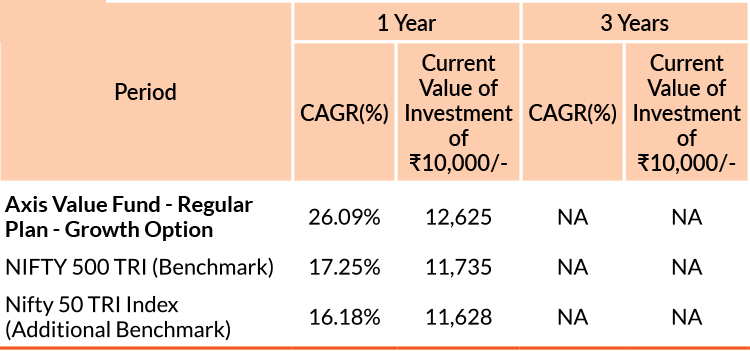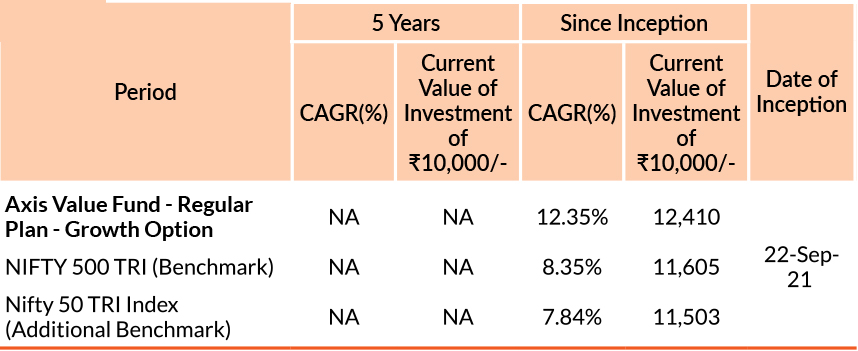 Past performance may or may not be sustained in future. Different plans have different expense structure. Nitin Arora is managing the scheme since 26th May 2023 and he manages 5 schemes of Axis Mutual Fund & Vinayak Jayanath is managing the scheme since 17th January 2023 and he manages 17 schemes of Axis Mutual Fund . Please refer to annexure for performance of all schemes managed by the fund manager. Returns greater than 1 year period are compounded annualised (CAGR). Face Value per unit : ₹ 10.